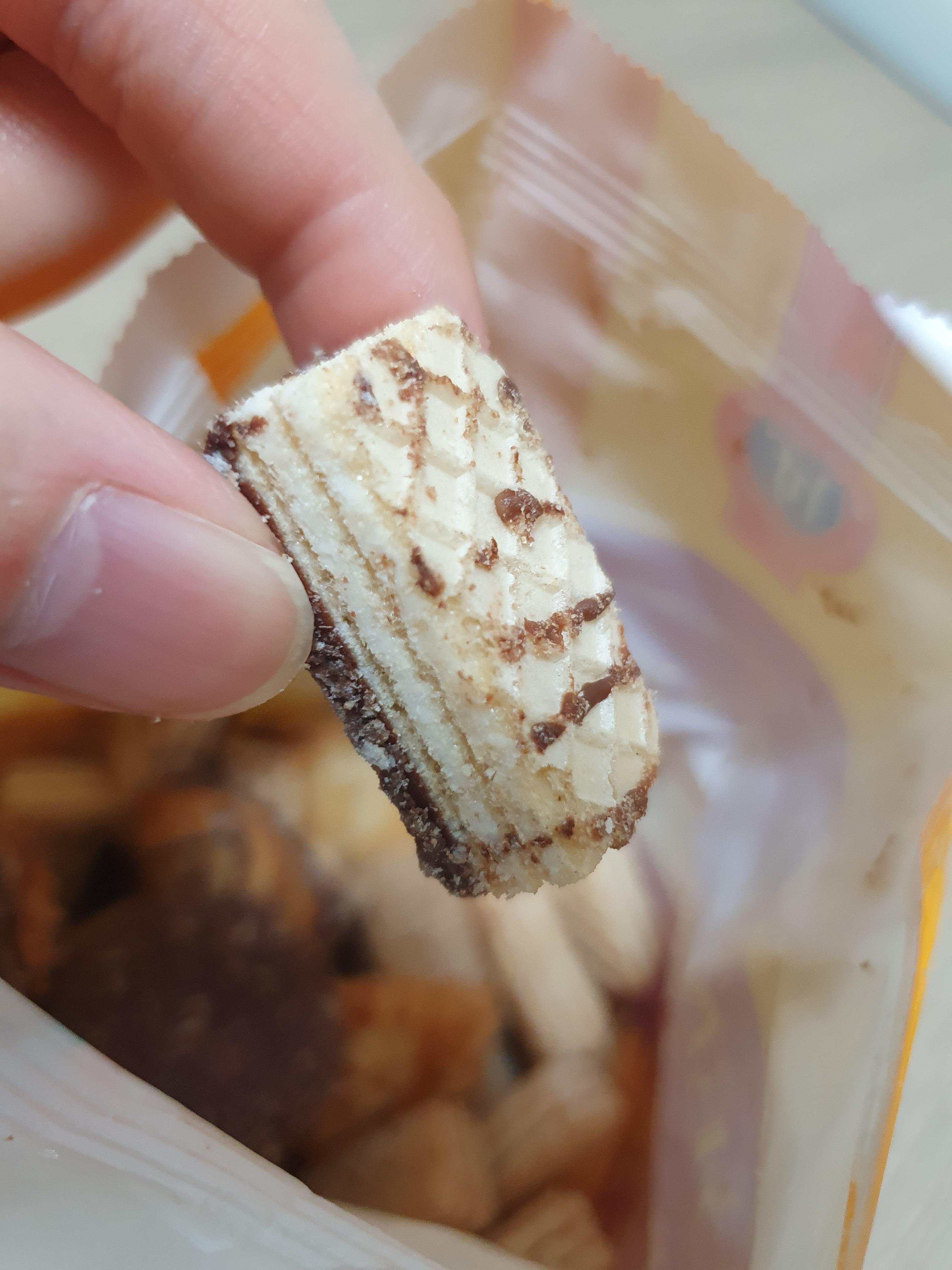 다시 쿠키로 돌아왔는데... 쿠키에는 '웨하스 맛'도 같이 난다. 죄다 섞여있고 쿠키들이 그 냄새를 다 흡수한 상태이다. 심지어 초콜릿들은 서로 붙어가지고 안 떼어지기도 한다.