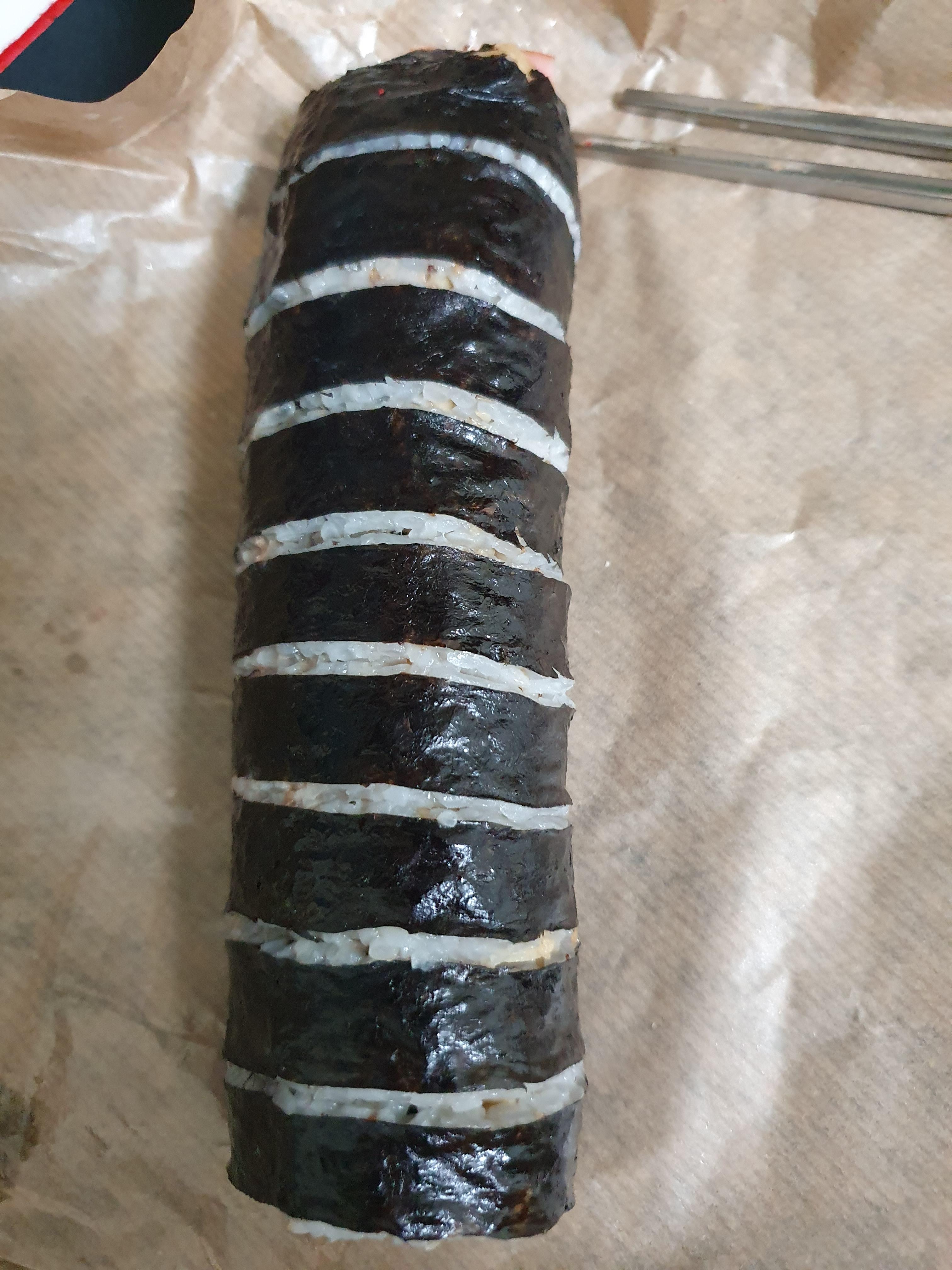 이거 소비자들이 모를거라 생각할 수 있는데 바로 싼 김밥은 냉장고에 넣어놔도 확실히 '맛 보존'이 더 길게 된다.ㅎㅎ 싸둔 김밥은 이미 뭐 단무지 국물 밥알에 다 스며들어서 단무지도 그냥 편의점 김밥 마냥 맛도 없고 재료들도 신선도가 한단계 다운되어있고 밥도 상태가 많이 안좋아진 상태이다. 제발... 김밥 만만하게 보지 말고 김밥도 이제 가격이 1000원도 아닌데 미리 싸두지 말자-_-... 진짜 양심... 김밥도 요리라고ㅠㅠ 주문 들어왔을 때 만들어주는 게 맞지.