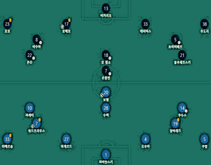 '쿨루셉'은 그냥... 여전했다. '비수마'도... 여전했다. 여전했다는 게 좋은 의미가 아니다. '로 셀소'는 좋은 시도 보여줬다. '로메로'의 복귀는 확실히 좋았다. '데이비스'+'호이비'는 그냥... 그냥 자리 메꾸는 거다.