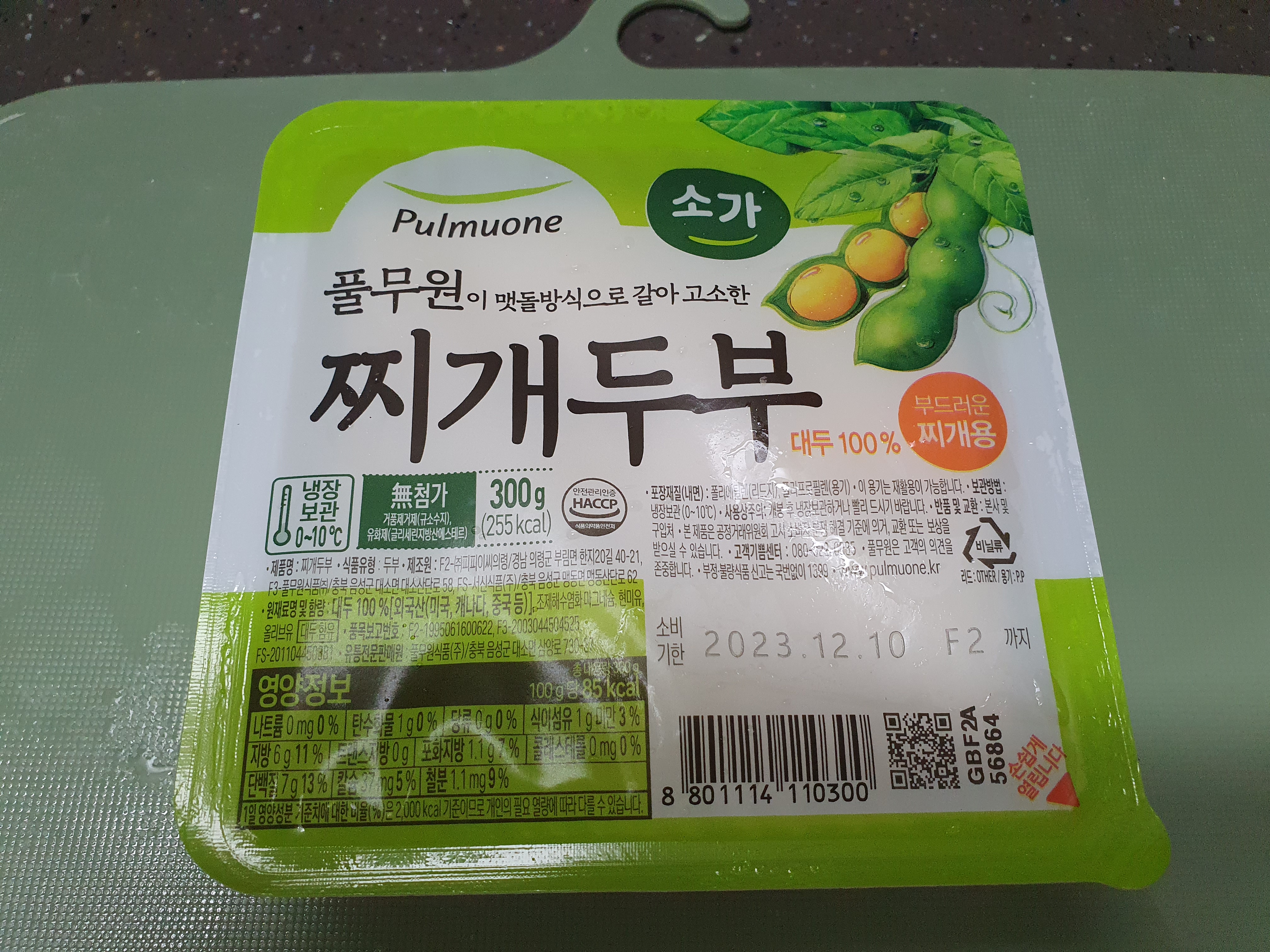 가격은 1800원 정도인데 할인도 자주 들어가서 좀더 저렴하게 구입할 수 있다. 300g이고 찌개두부는 야들야들하다. 부침두부는 단단하고 서글서글한 맛이고 찌개두부는 말랑하고 야들야들하다.