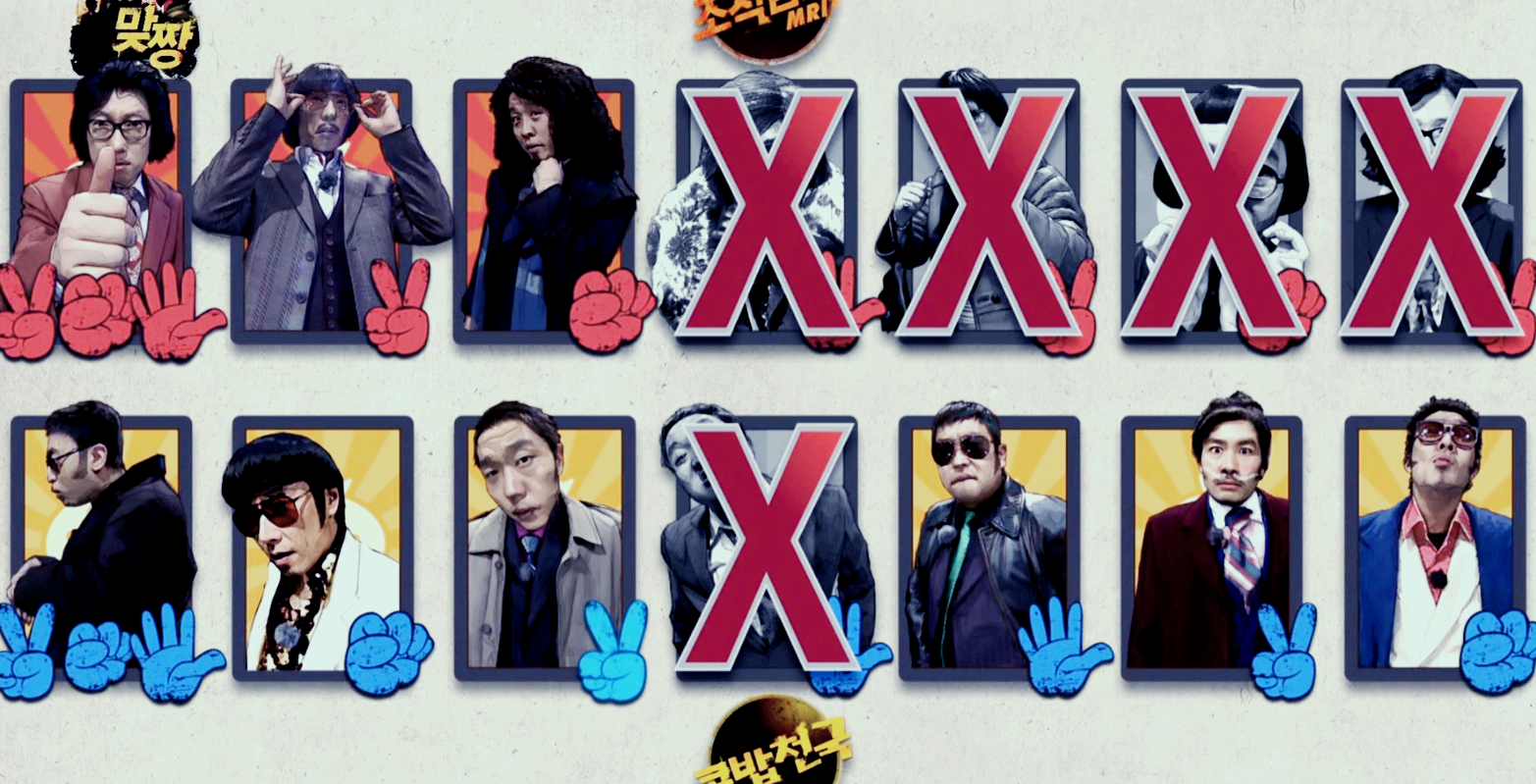 하하, 정형돈, 노홍철, 하림, 윤종신, 김제동, 길은 '콩밥천국'이고 유재석, 정준하, 박명수, 조정치, 김영철, 데프콘, 권오중은 '조직검사(MRI)'이다.