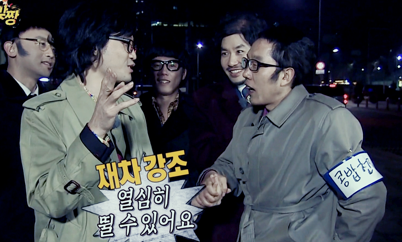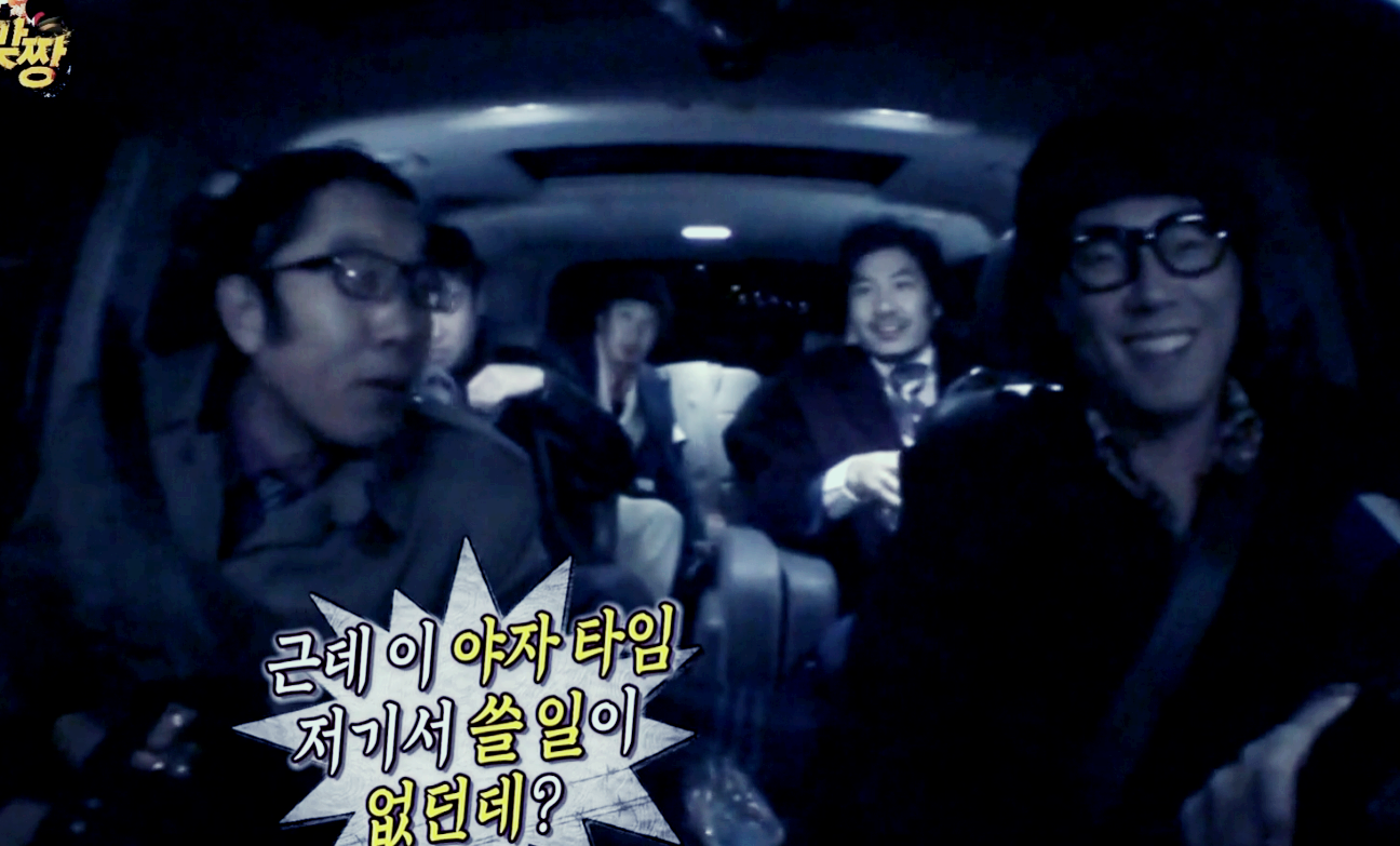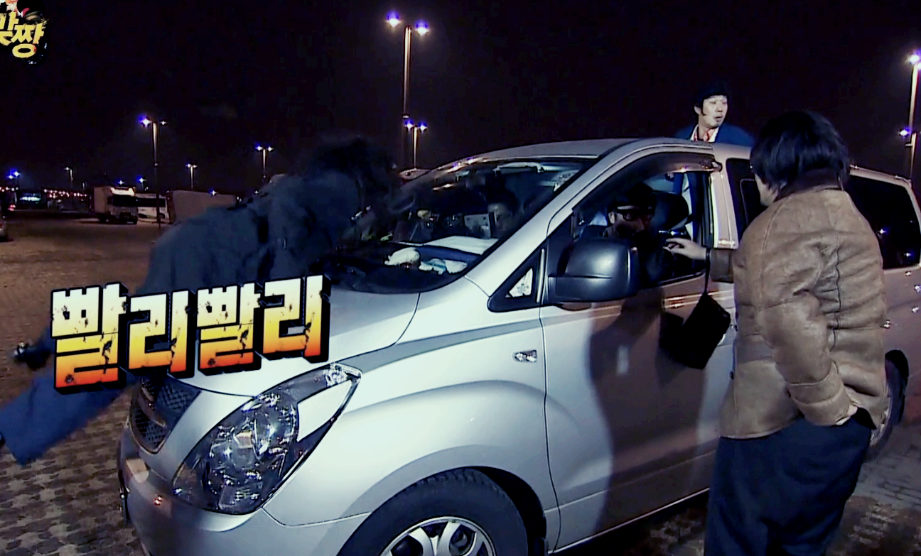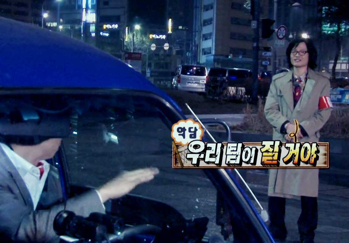 여기서 '노홍철'이 차 트렁크를 열어 뒷 좌석에 앉아있던 '조정치'까지 터치하면서 '조정치'를 아웃시켜 버린다. '노홍철'이 참 이런 거 잘해ㅋㅋ 바로 트렁크 열 생각을 하는 게 참 대단하다.