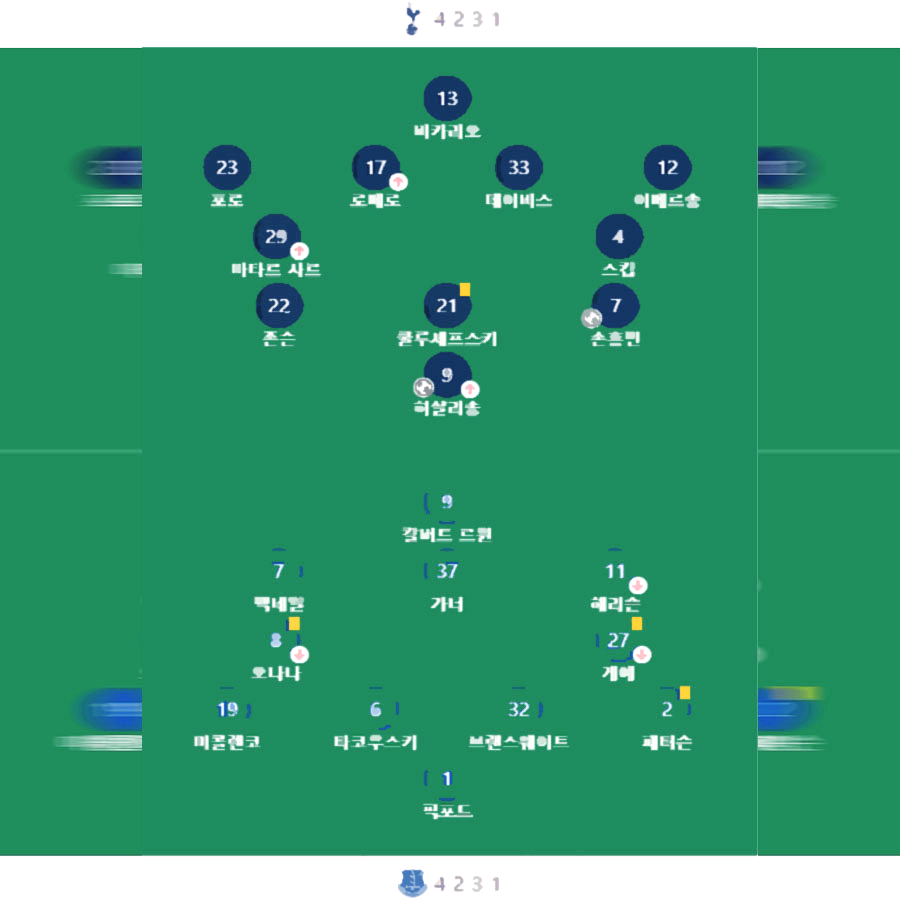 이번 라인업은 '히샬리송' 톱스트, '손흥민' 왼쪽 윙어, '쿨루셉' 공미인데 이 포메이션이 아주 훌륭한 것 같다. 공미에 '메디슨'이나 '로셀소'가 있긴 한데... 흠... 내 생각엔 궂은 일을 '쿨루셉'이 정말 잘 소화해내는 것 같은데 말이다. 뿌리는 것도 나쁘지 않고 말이다. 워낙 활동량도 많고 체력도 좋고 몸싸움도 탁월해서 진짜 '쿨루셉'은 포지션 문제다... 윙어는 정말 내 기준에서는 최악이라 생각해서 '쿨루셉'이 오늘 포함 최근 경기들처럼 포지션을 공미나 윙백에 두면 정말 최고일 것 같은데...