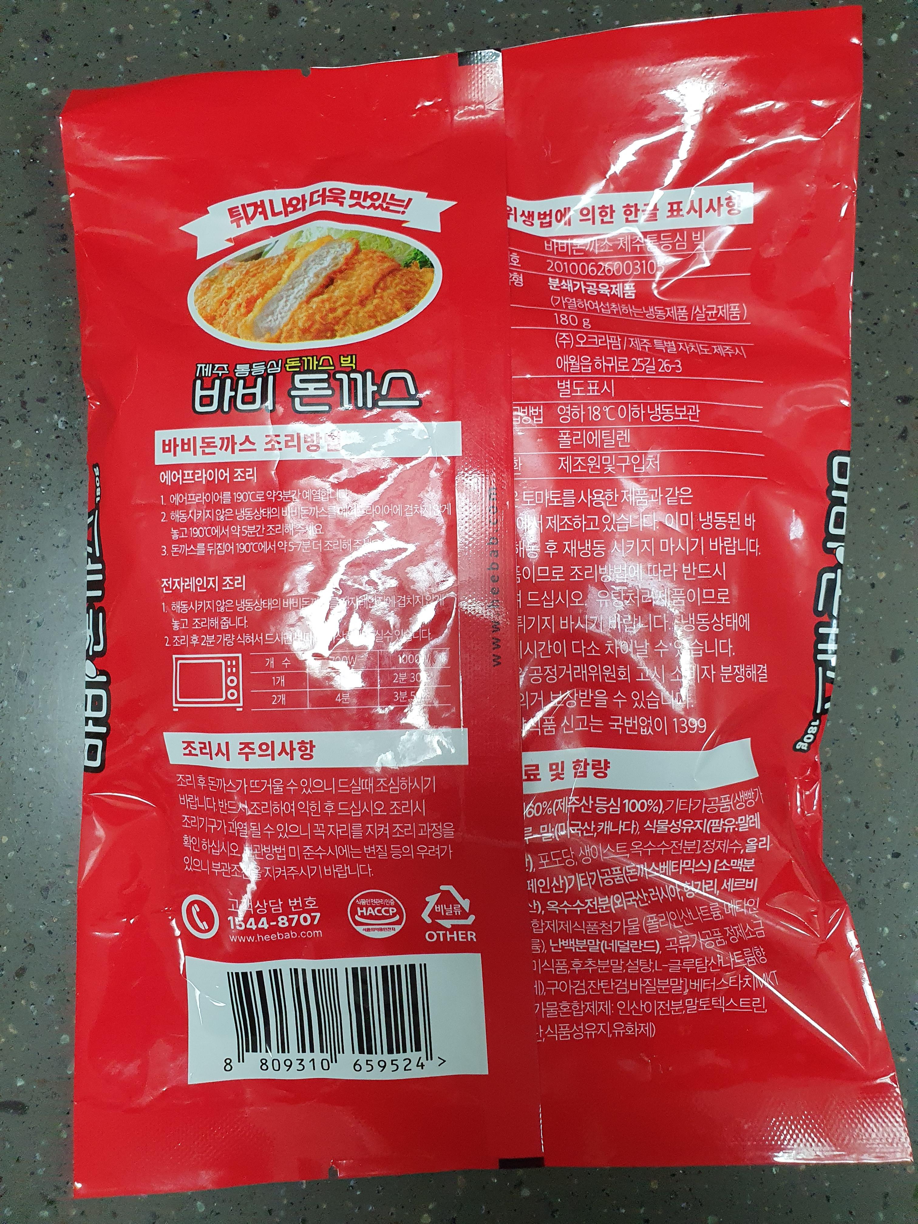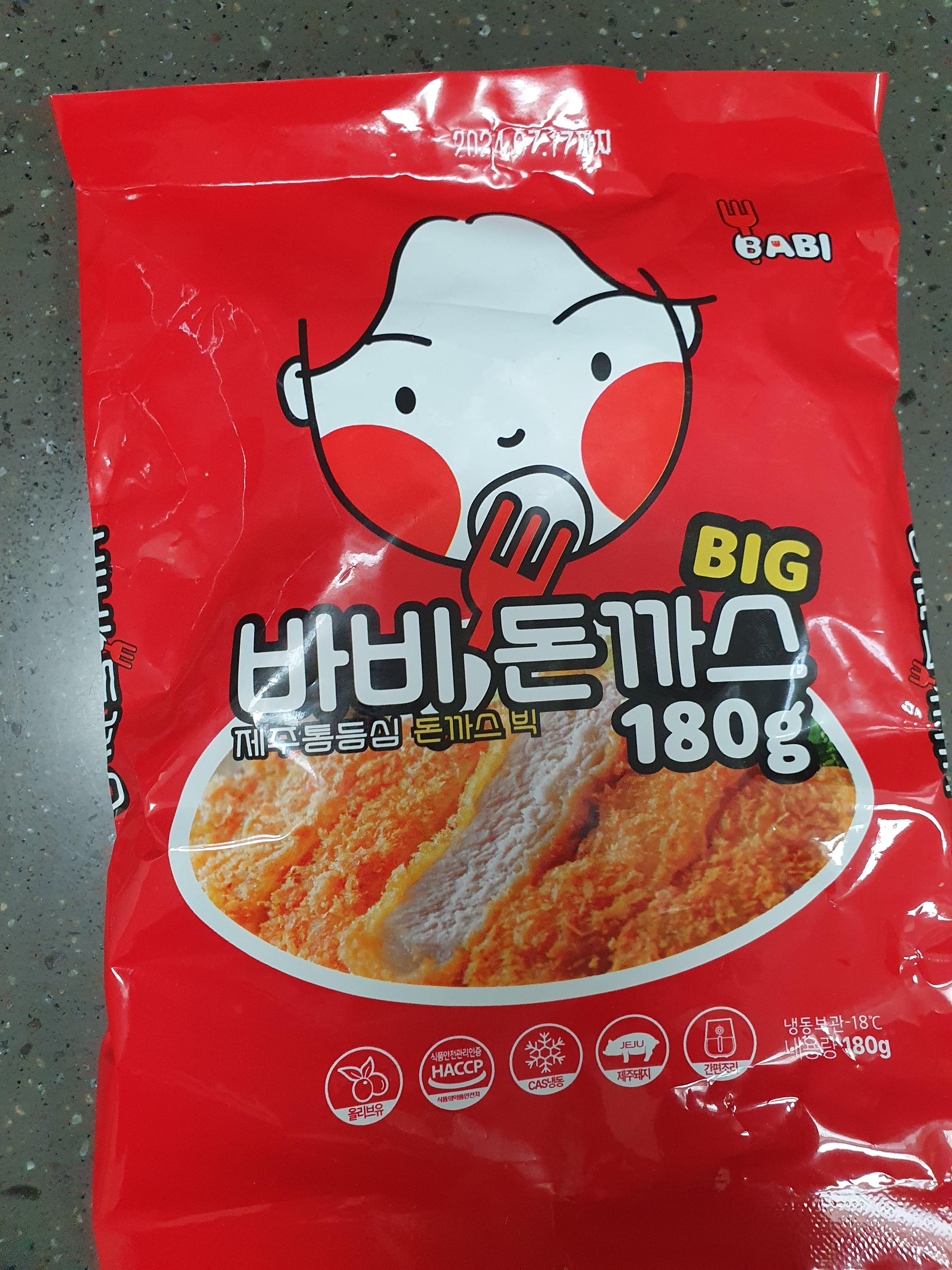 오 이거 기대 이상이었다. 일단 좋은 점은 돈까스 딱! 한 개 1인분이 들어있다는 점이다. 깔끔하게 하나 먹고 치울 수 있다. 바비돈까스이고 버전은 치즈 돈까스도 있는데 일단 기본으로 바비돈까스 제주통등심 빅 180g을 구입해서 먹어봤다.