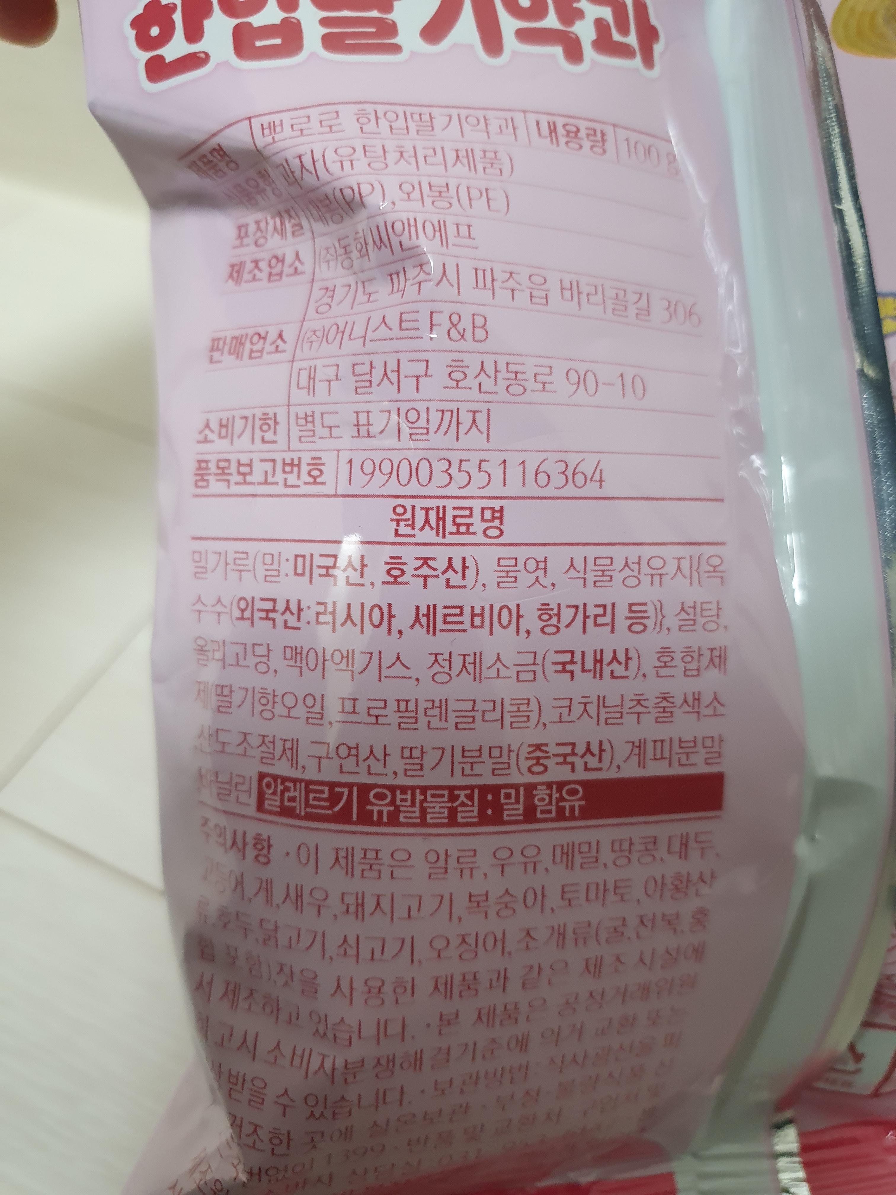 근데 이 살짝으로도 '오, 진짜 딸기맛 약과도 괜찮겠는데?'라는 생각이 들었다. 비록 뽀로로 한입딸기약과는 딸기맛은 정말 경미하게 느껴졌지만 그래도 맛은 있었다.
