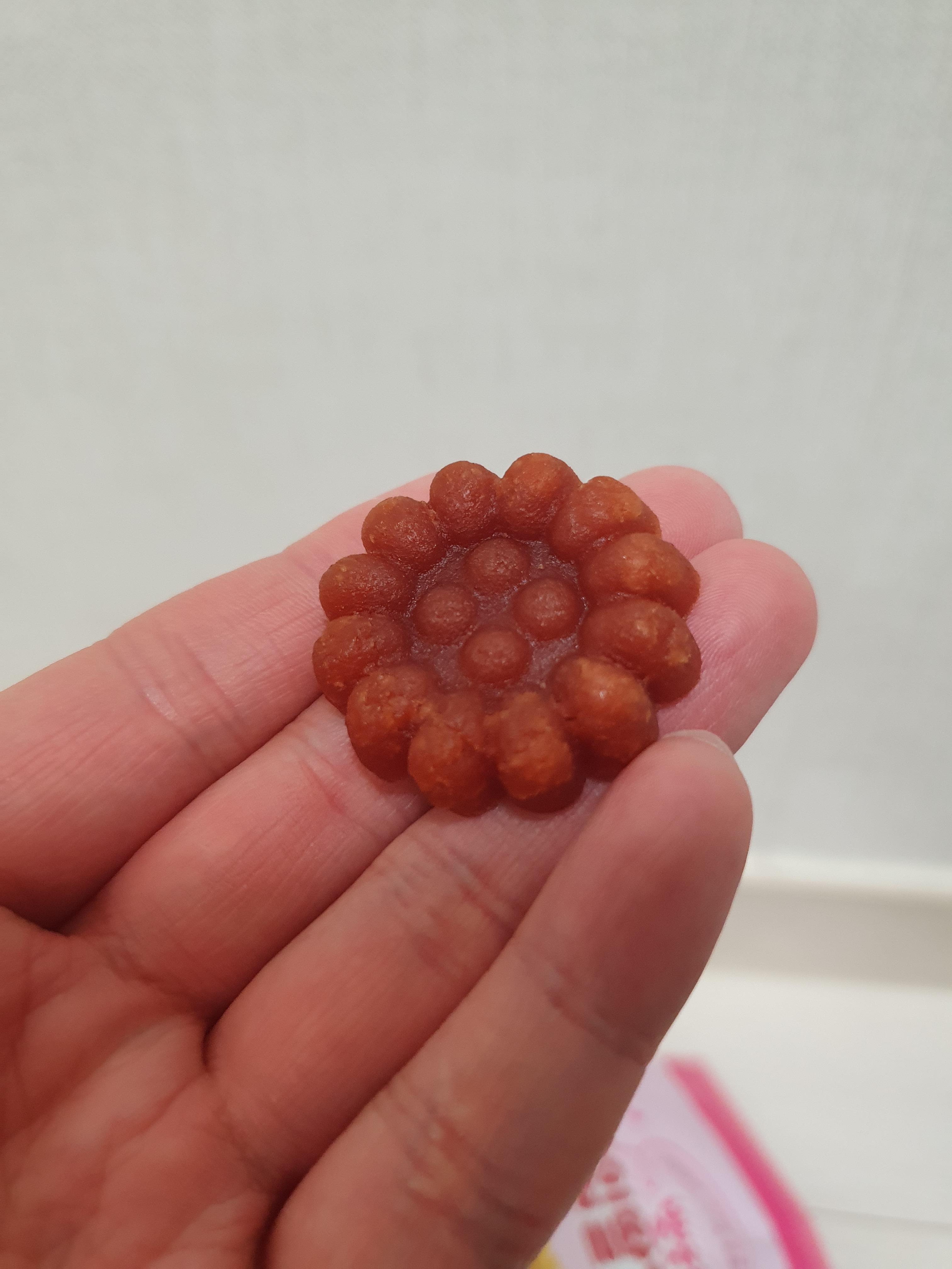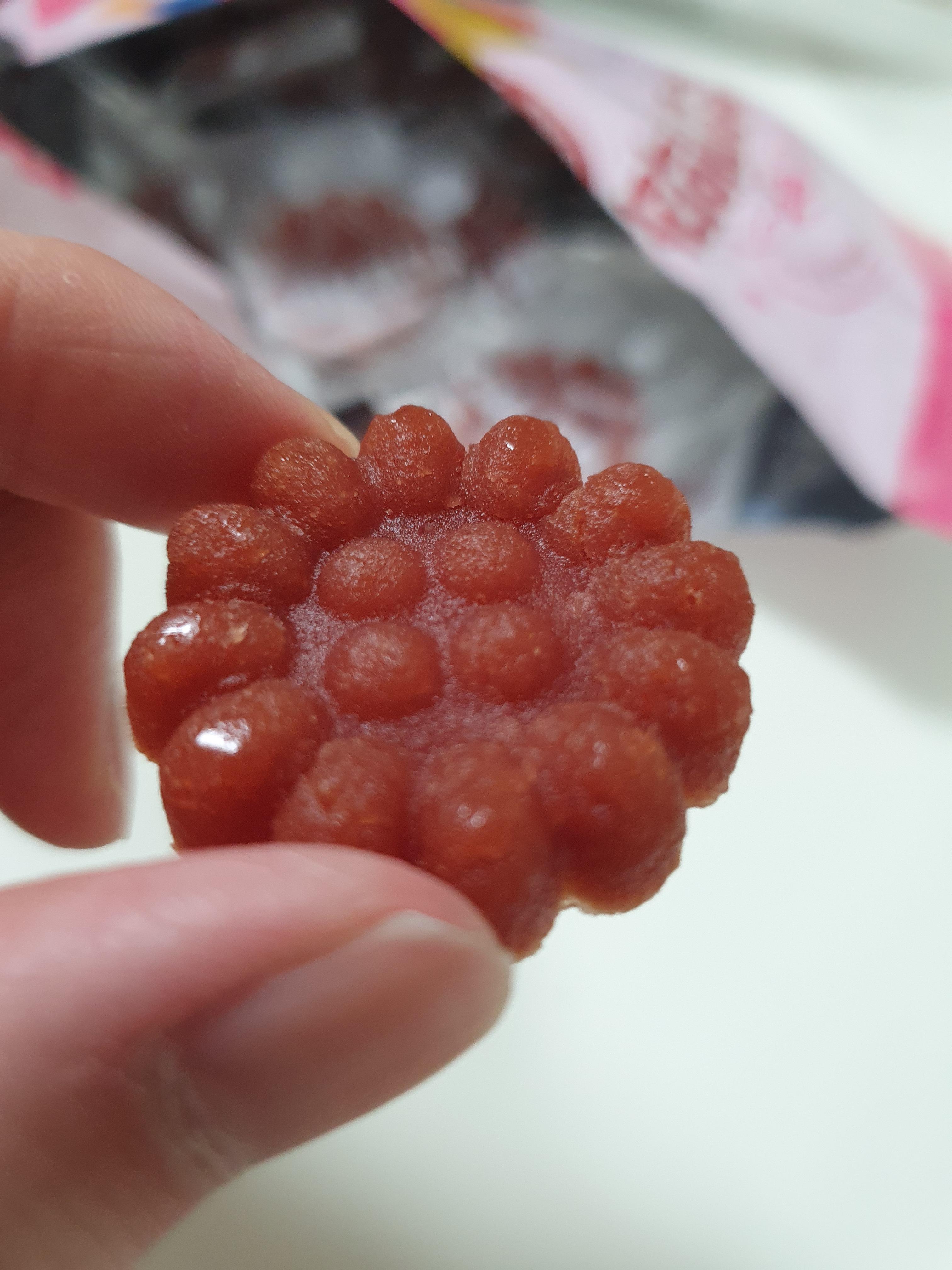 그림처럼 붉지 않고 정~말 앞서 말했듯이 정~말 눈 크게 뜨고 자세히보면 붉은 빛이 살짝 있는 정도이다. 사실상 그냥 일반적인 미니약과와 다를 게 없다.