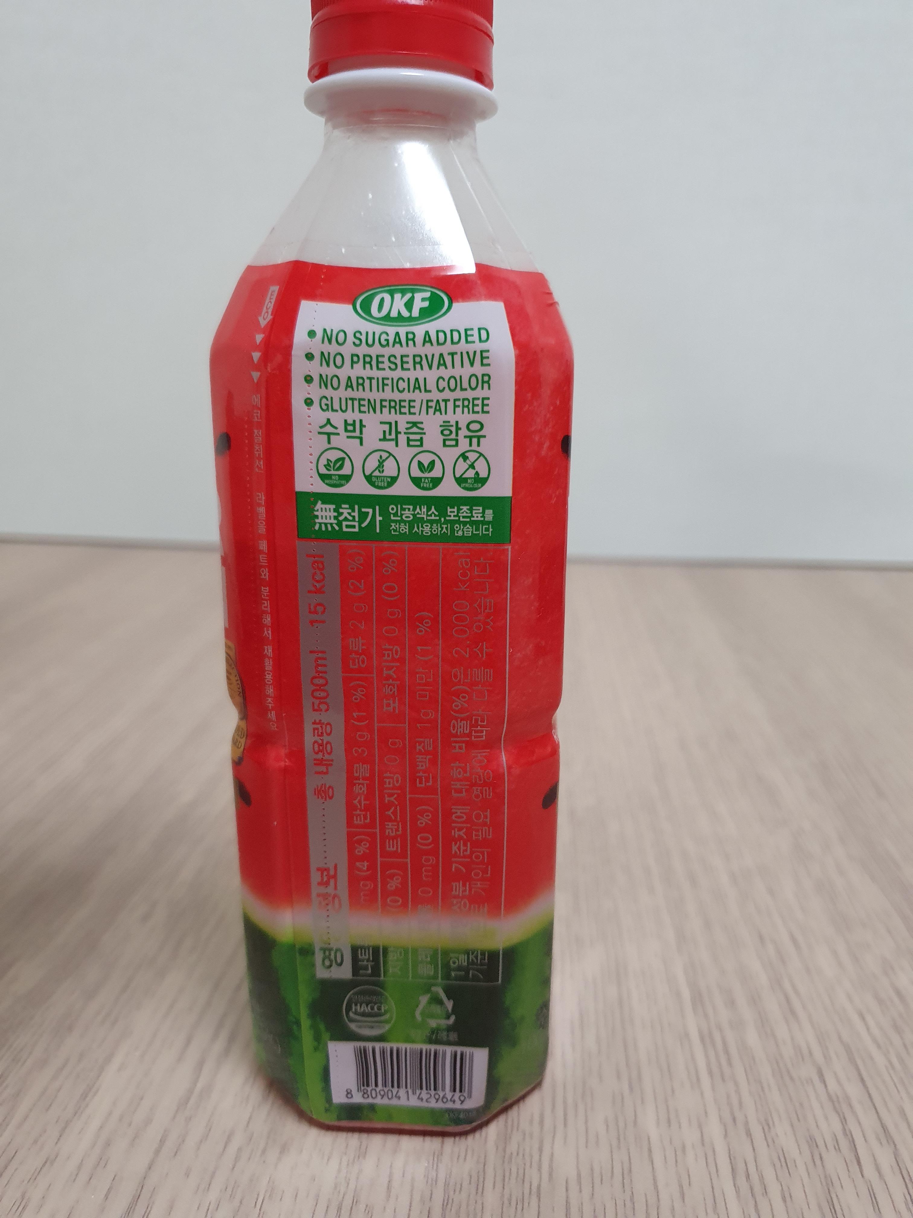 또, 설탕 섭취도 많아지니까 그게 좀 부담인데 확실히 설탕이 안들어가면 뒤끝이 깔끔한 게 있어서 더 깔끔하게 음료수를 마실 수 있어 좋고 OKF 워터멜론 노슈가에디드도 마찬가지인 맛이었다.