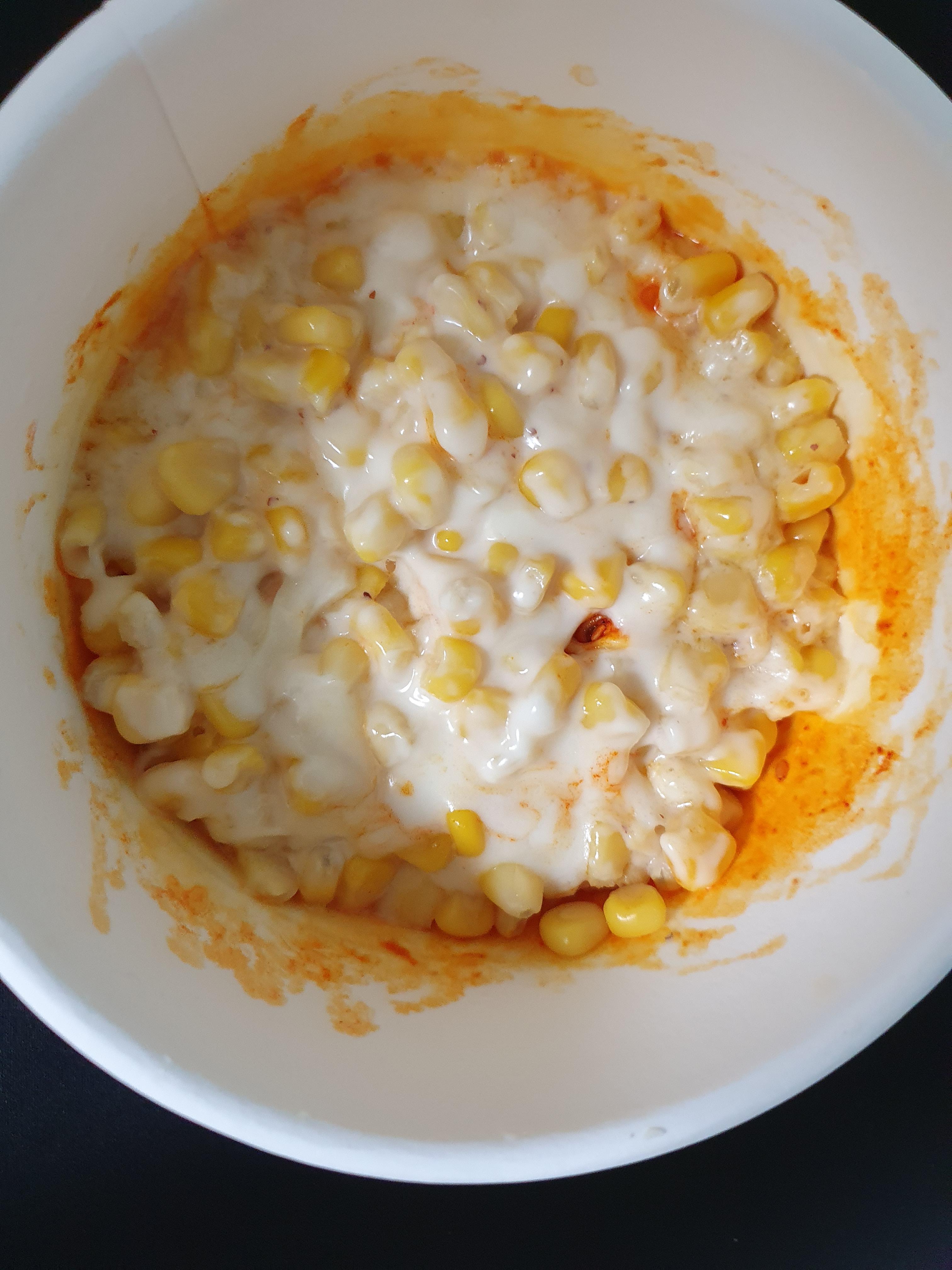 그냥도 먹었지만 두 번은 불닭볶음면에 콘마요치즈 해서 먹었다. 꿀맛... 간단하게 그냥 불닭 만들어서 그 위에 마가린, 치즈, 스위트콘, 마요네즈 뿌려서 전자렌지 돌려줬다.