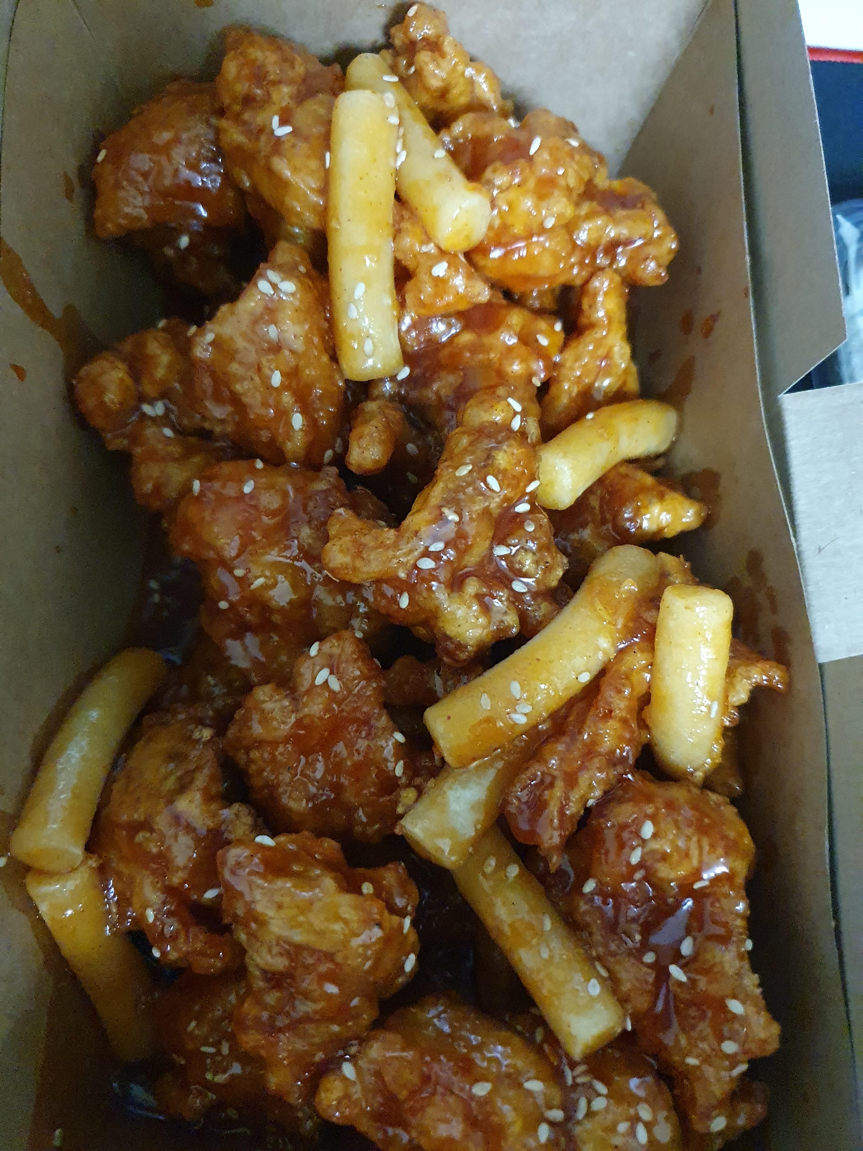 치킨은 정말 기대 이상이었는데 딱 옛날에 먹던 그 양념치킨인데! 이게 업그레이드 되었다고 할까나? 옛날 양념치킨들이 먹다보면 상당히 느끼해지는 단점이 있었는데 이거는 그렇지 않았다. 배불러서 다 못 먹은 거지, 컨디션(?) 좋은 날이었으면 다 먹어치울 수 있을 정도로 생각보다 깔끔하고 느끼함이 덜했다.