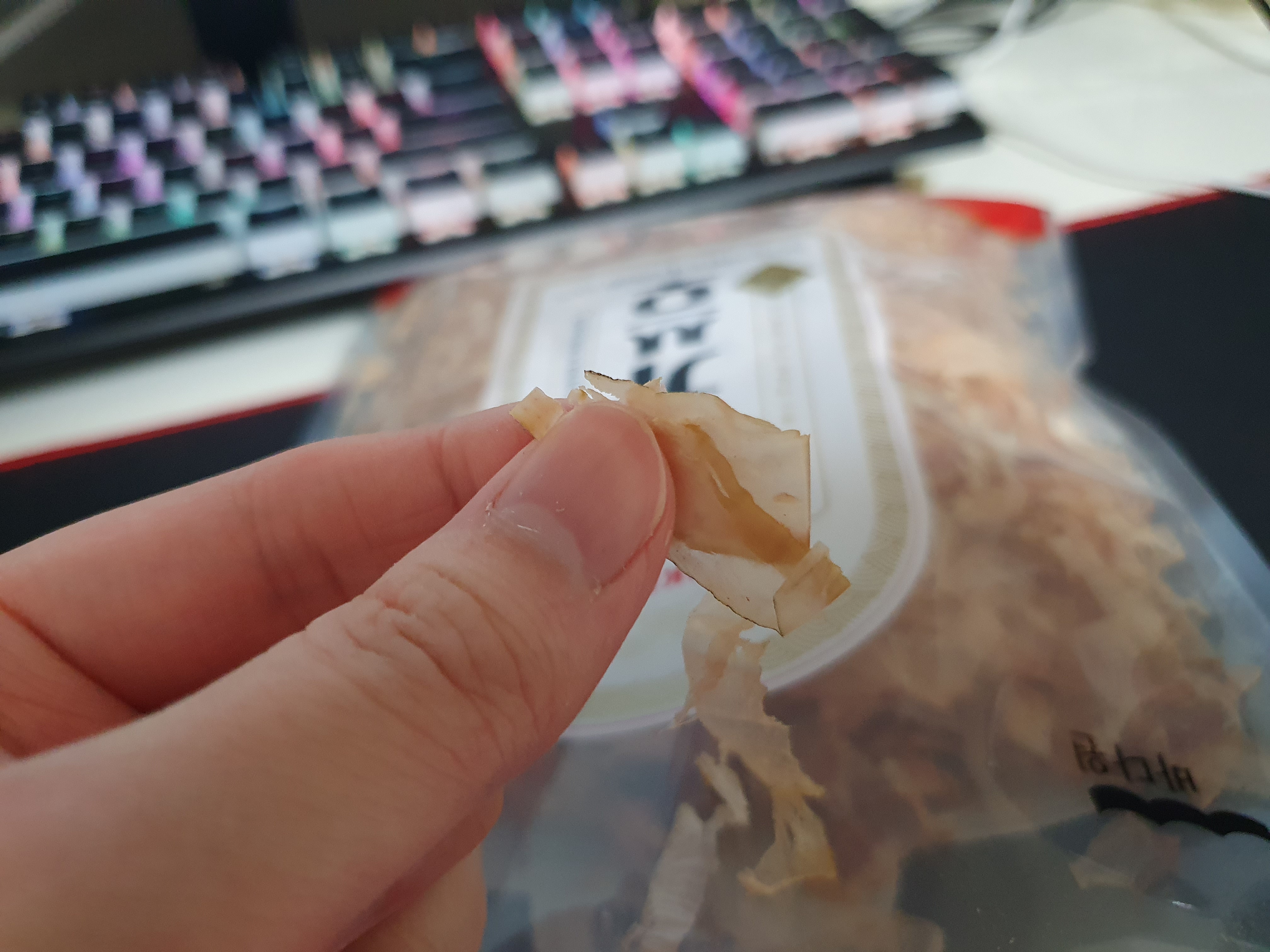 하나가쓰오는 유통기한이 1년으로 되어있고 내가 구매한 건 한... 세달 정도? 지난 수준인 것 같다. 아무래도 유효기간과 보관 상태에 따라 가쓰오부시의 상태에 차이가 많이 보이는 것 같다.