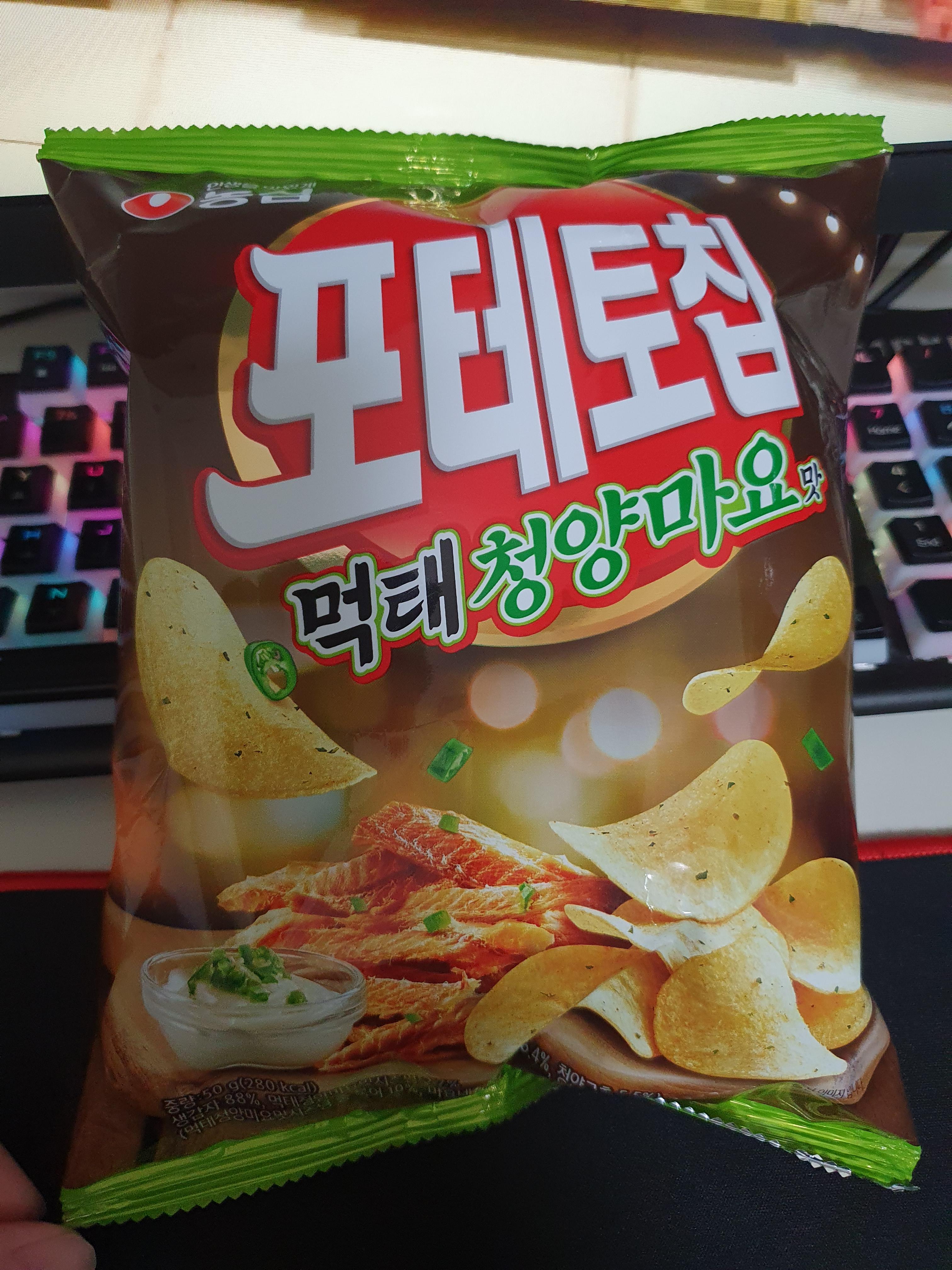 오~ 이거지~ 농심 포테토칩 먹태 청양마요맛인데 여태 먹어본 먹태 청양마요맛 중에서 가장 맛있었다. 감자칩하고 잘 어울리는 것 같고 포테토칩이라 더 잘 어울렸던 것도 같다.