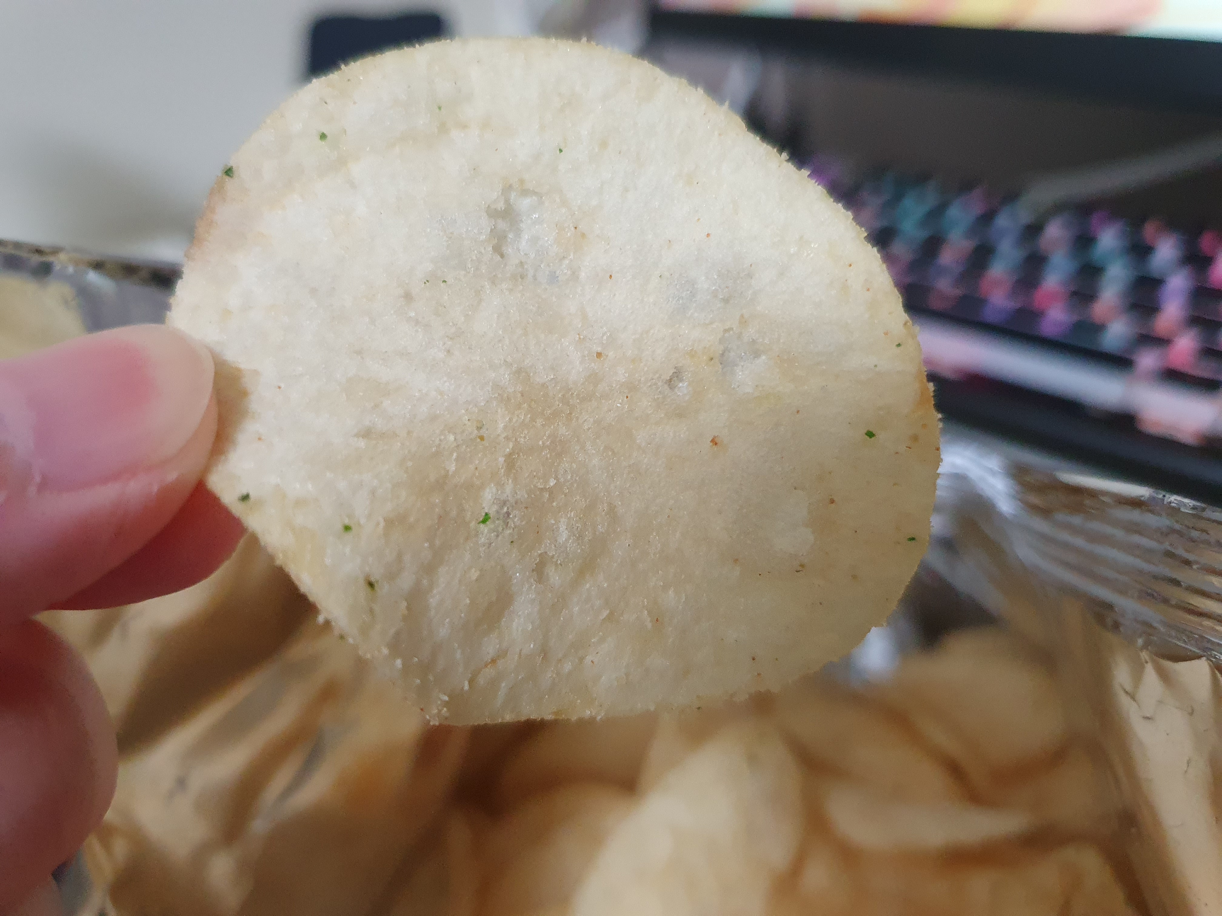 포테토칩의 시리즈이기 때문에 당연히 기본 베이스는 포테토칩이다. 포테토칩의 느낌이 잘 담겨있었다. 해서 기본 베이스는 포테토칩 오리지널의 맛을 생각하면 되고 여기에 이제 시즈닝이 먹태 청양마요맛이 뿌려져있는데 후후... 좋았다.
