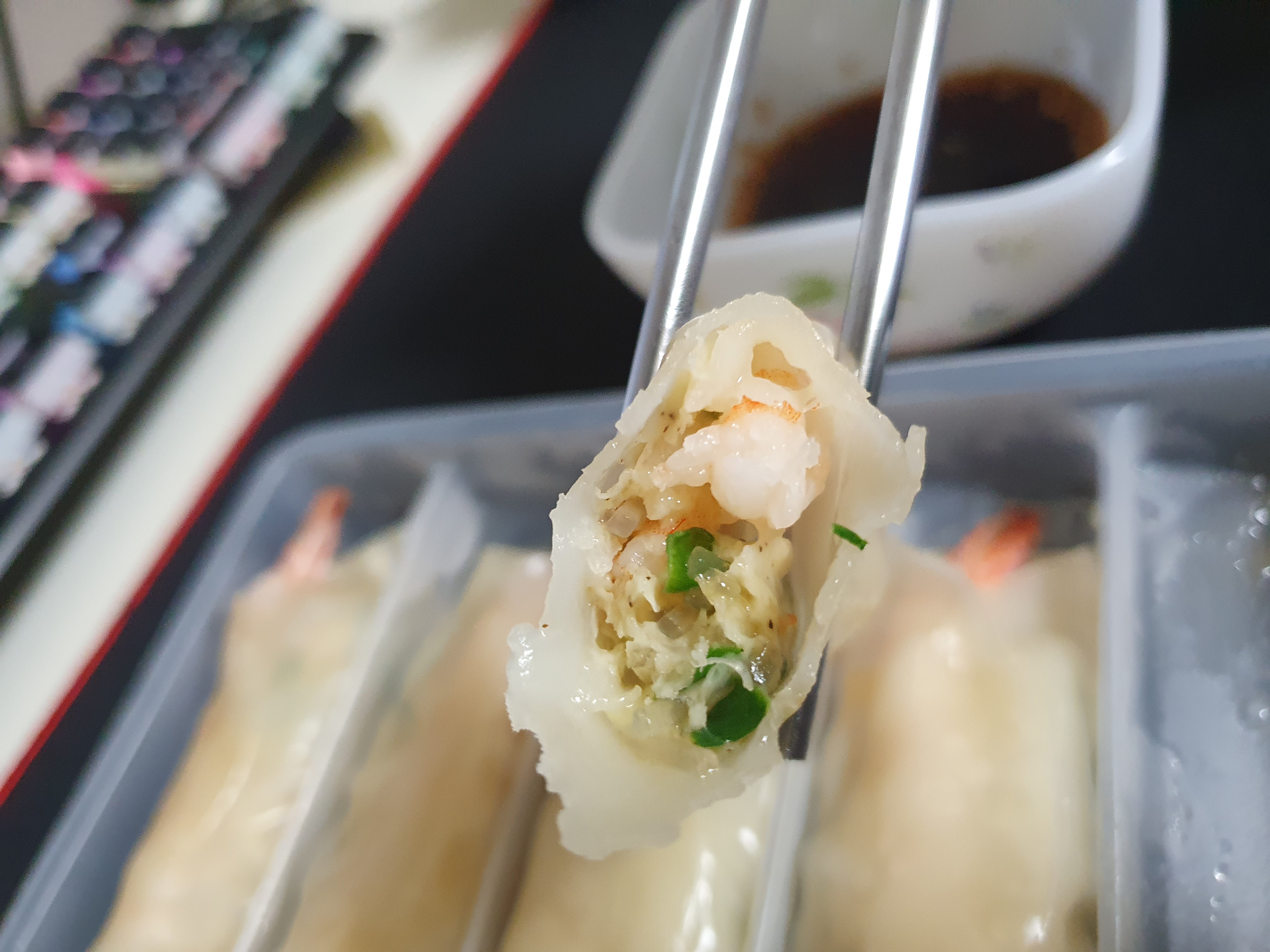 안에는 보다시피 새우가 하나씩 들어있다. 완전 두꺼운 통통한 새우는 아니지만 식감이 통통하니 좋았다.