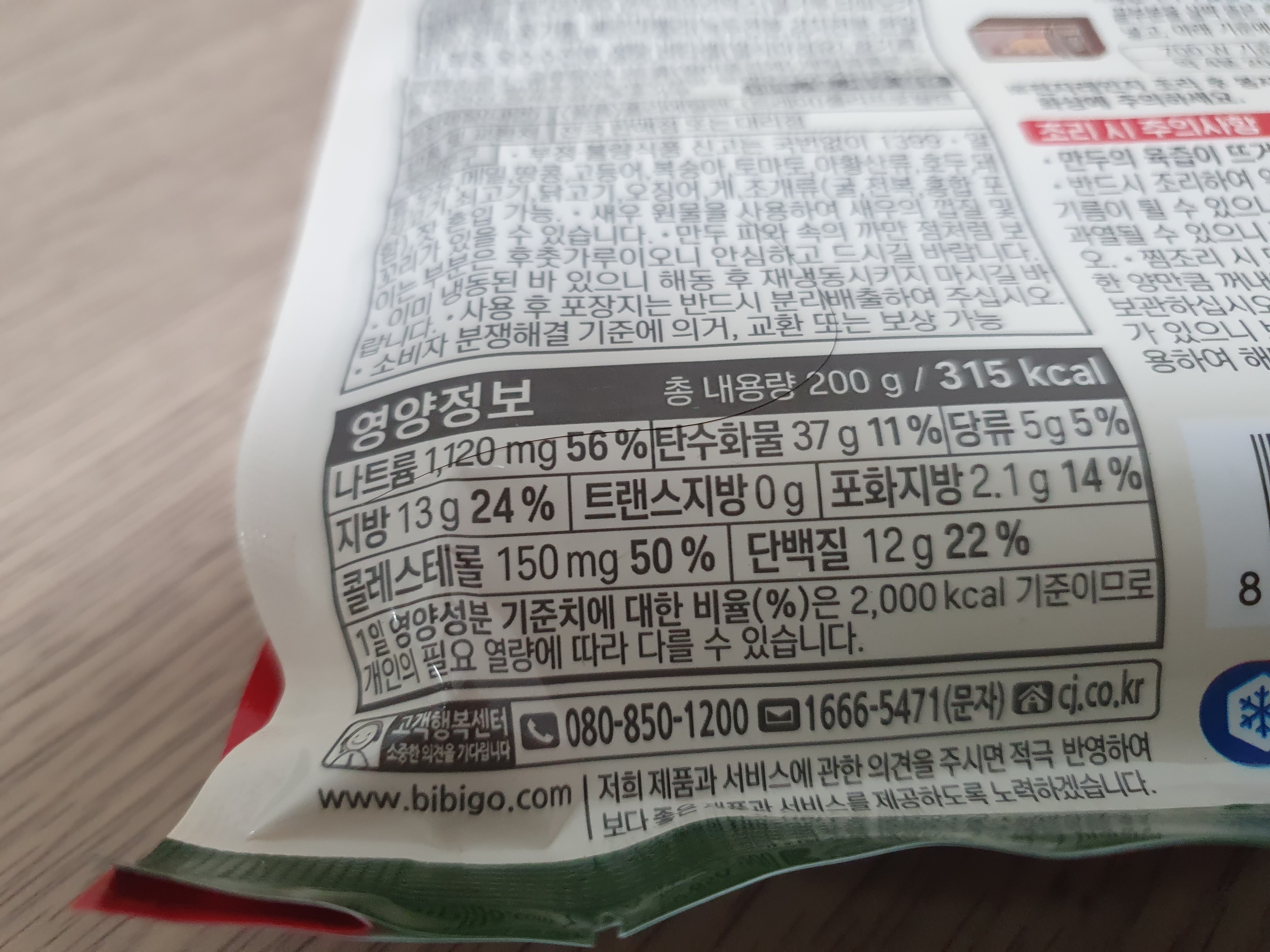 위 사진은 이미 전자렌지에 돌린 후 상태이다. 전자렌지 조리법은 봉지 끝부분을 살짝 뜯어서 돌려주면 된다. 이러면 봉지 안에 스팀이 고이면서 만두피가 딱딱해지지 않고 쪄지는 효과를 볼 수 있다. 기왕이면 아예 적당히 뚜껑 닫아서 돌려줄 전자렌지용 용기가 있으면 거기에 옮겨서 전자렌지 조리하는 게 더 좋겠다.