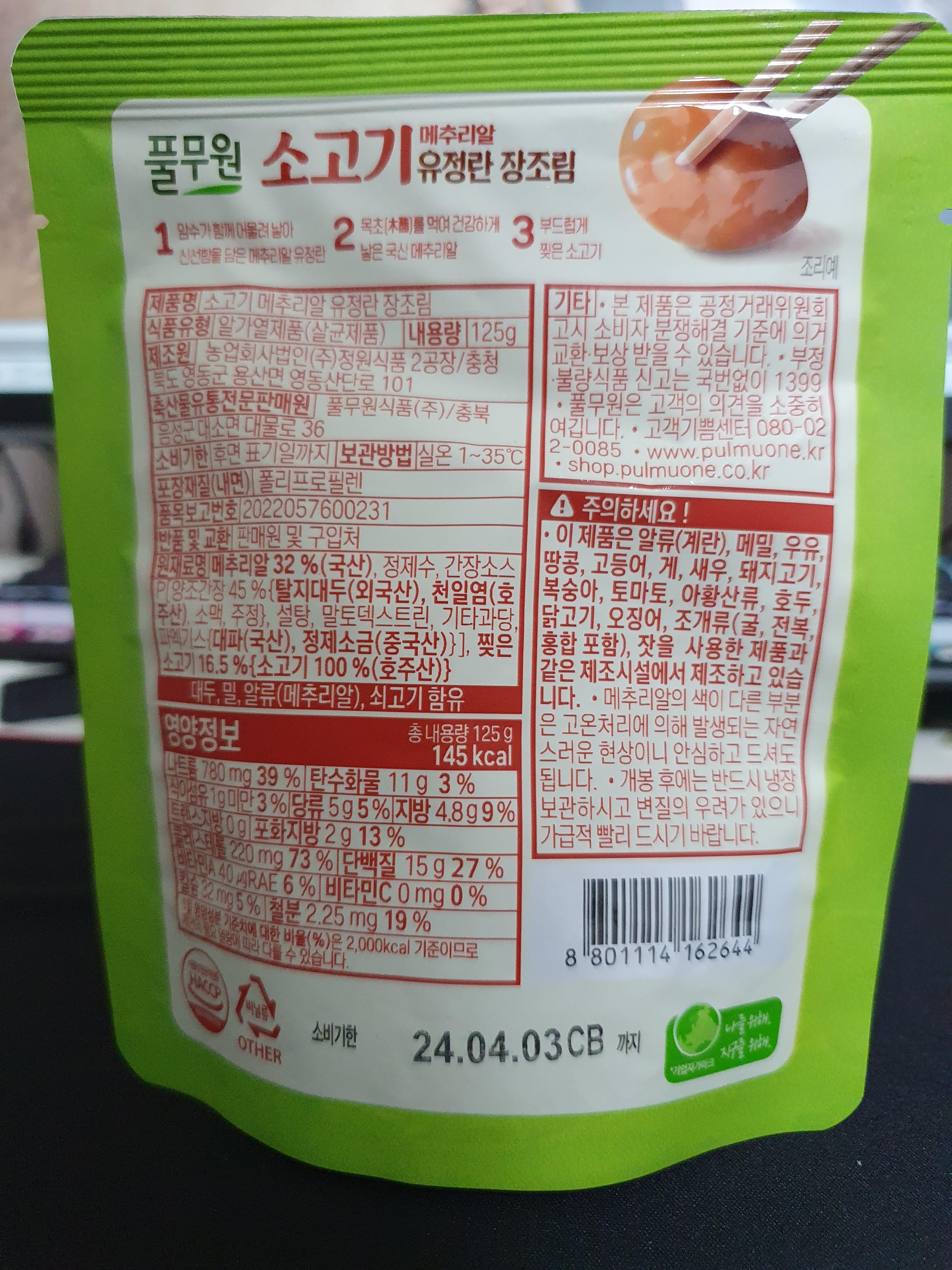 - 풀무원 소고기 메추리알 유정란 장조림 125g 후기