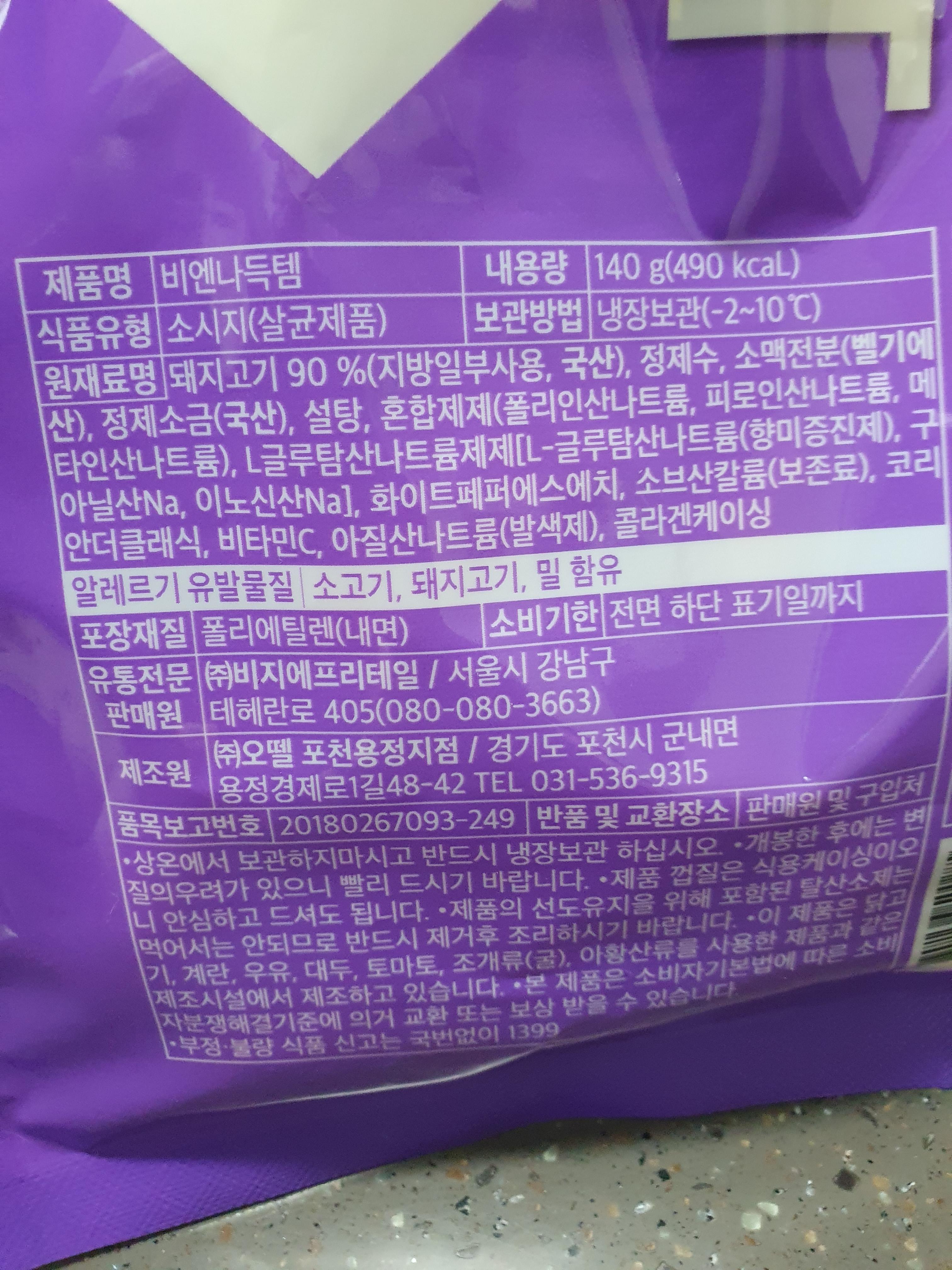 칼로리는 총 490칼로리이고 소비기한을 보니까 대충... 2~4주 정도? 되는 듯 싶다. 정확히는 모르겠다. 음~ 가격도 뭐 무난하고 비엔나 메인 반찬으로 식사 하고 싶을 때 이거 한봉지 사면 딱이겠는데ㅎㅎ