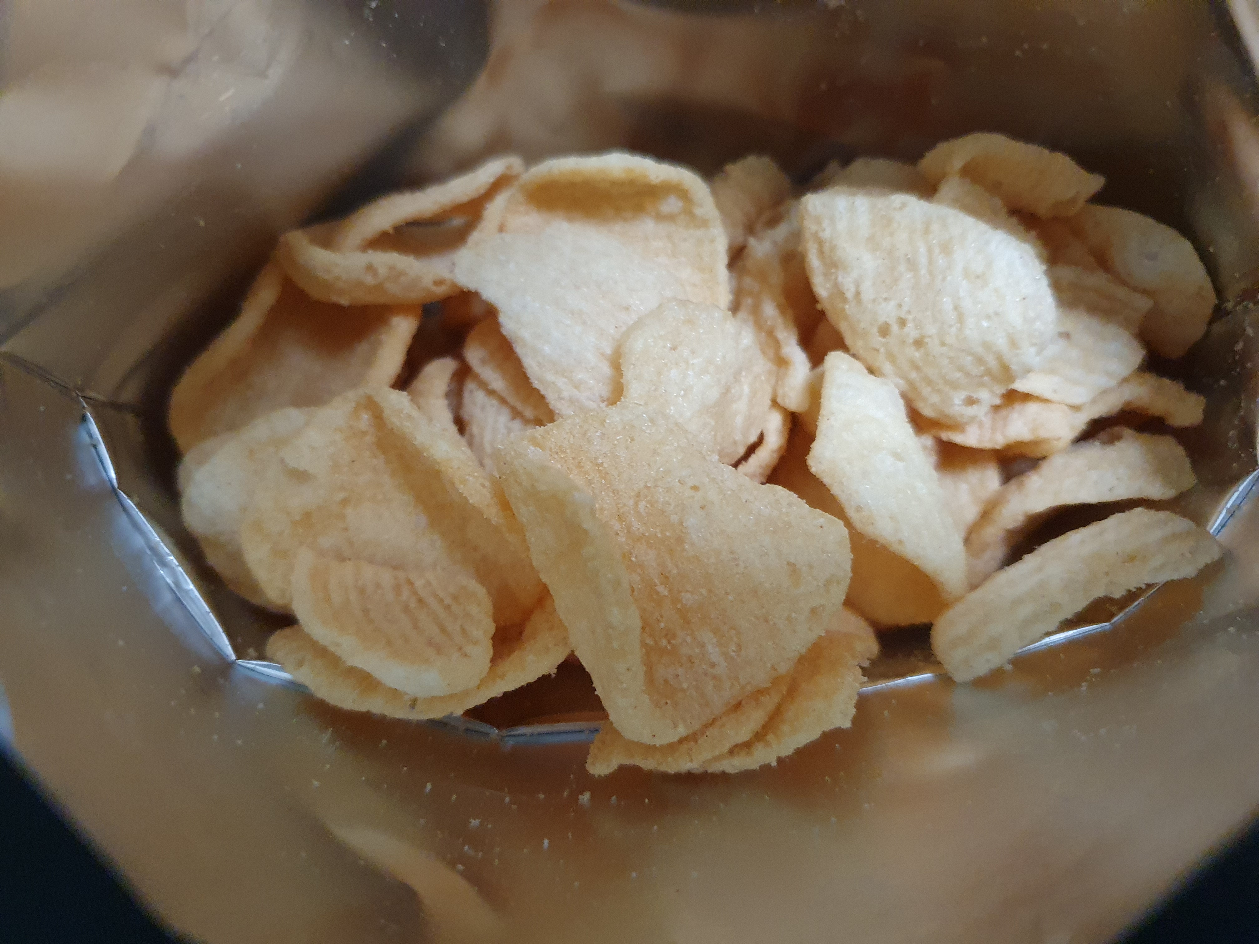 과자는 그냥 바삭한 감자칩이다. 감자전분으로 튀겨서 만든 그 맛이다. 아주 바삭하다. 과자를 만져보면 아주 서글서글하니 빤빤하다.