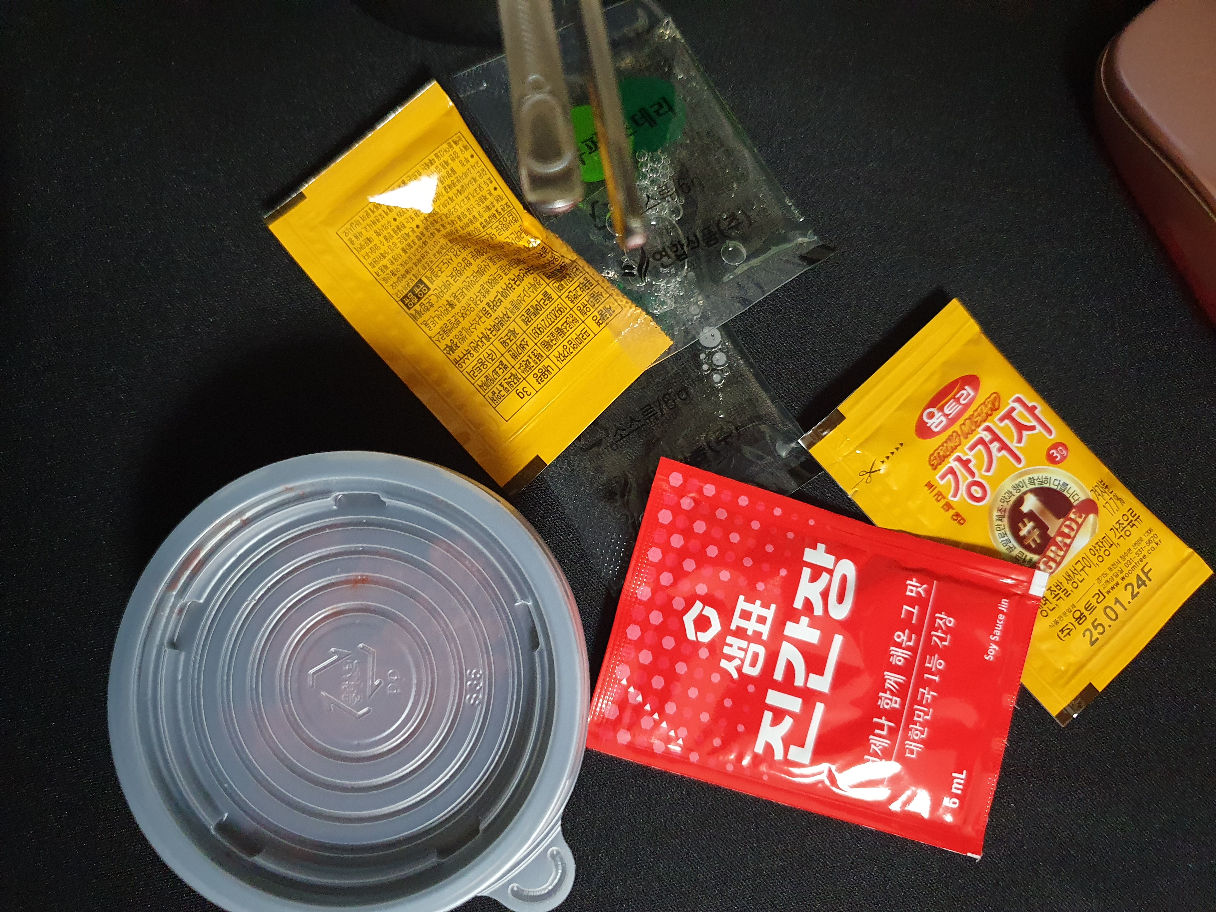 사이드도 잘 챙겨줬다. 겨자, 식초, 다대기, 간장 등이 들어있다. 다대기는 물냉면에 풀어먹으라고 준비된 것 같고 물냉면을 먹어보니 그냥 원상태로도 좋기는 좋은데... 면이 이게 살짝ㅎㅎ... 향이 좀 나서 육수는 좋은데 면이 살짝 좀 그래서 다대기 조금 풀어서 먹으면 괜찮았다.