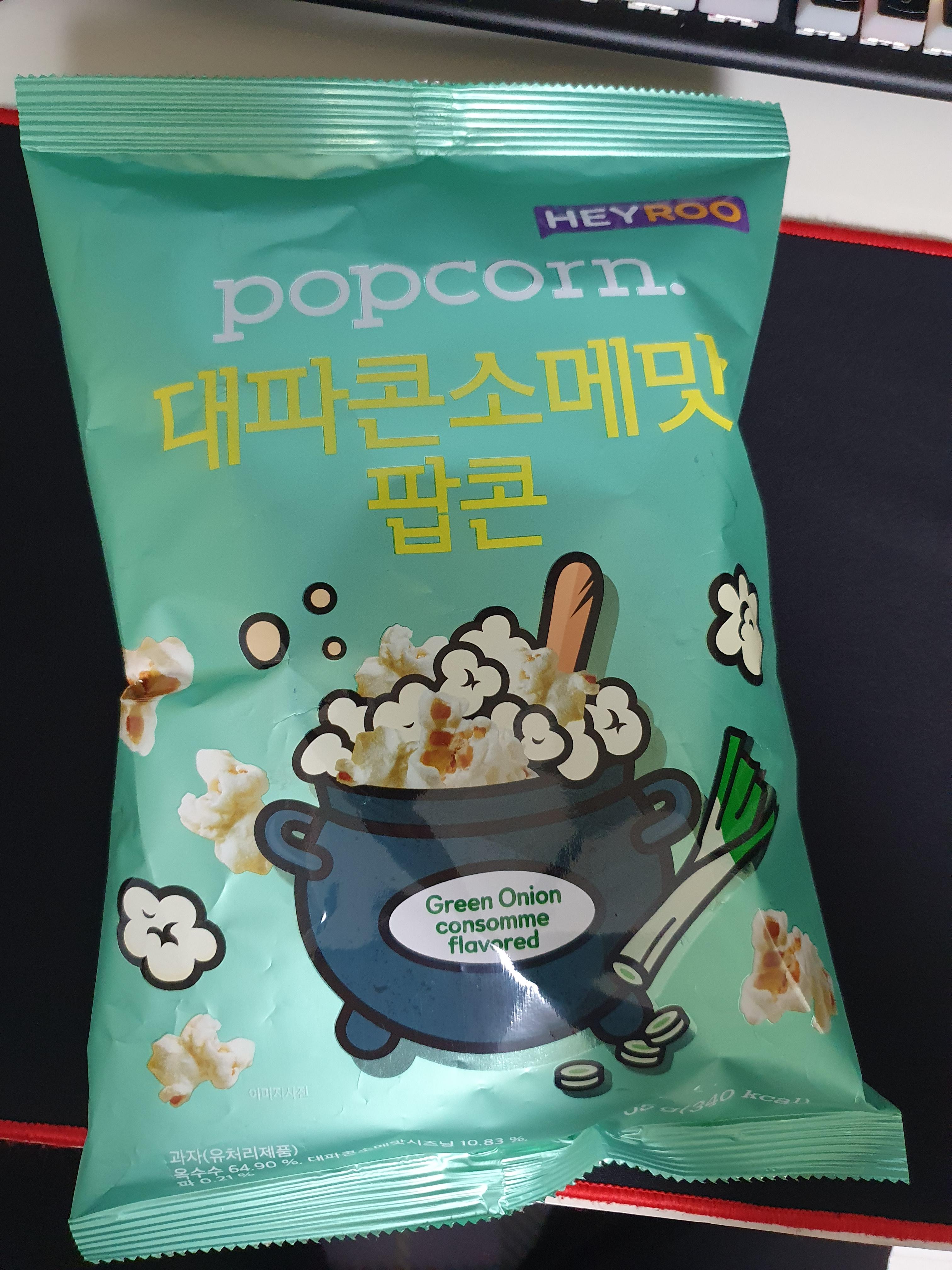 근데 개인적으로 콘소메맛을 그렇게 선호하진 않지만, 헤이루 팝콘은 맛이 좋은 콘소메맛이라 대파콘소메도 좋은데 그냥 콘소메도 좋아서 주문할 때 둘 다 주문할 것 같다~ 아이 좋아~
