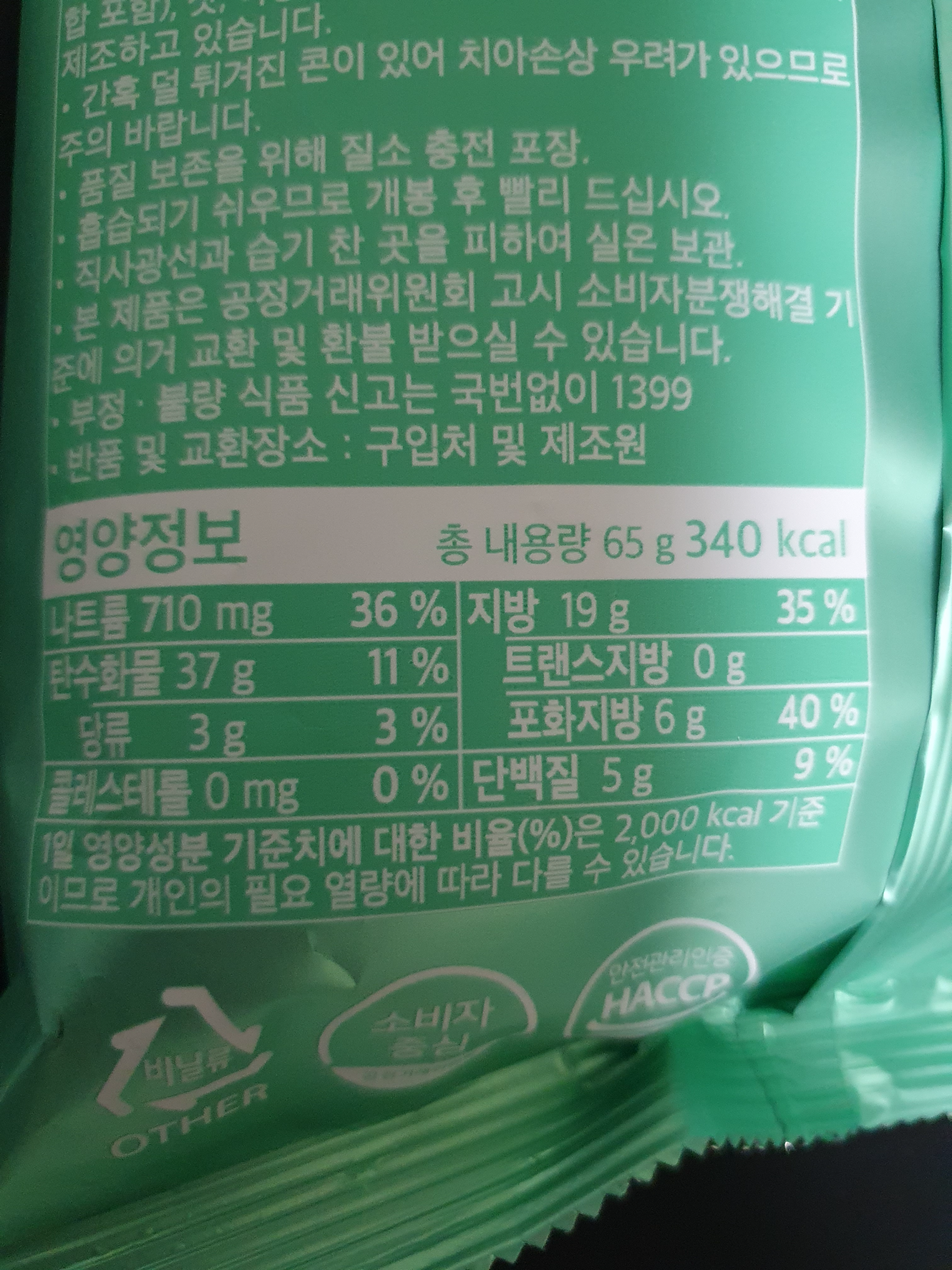 총 내용량 65g에 340칼로리이다. 한봉지 다 먹고 나면 1인 기준으로 포만감이 느껴지는 양이다. 양은 충분해서 부족함 없이 먹을 수 있을 것이다.