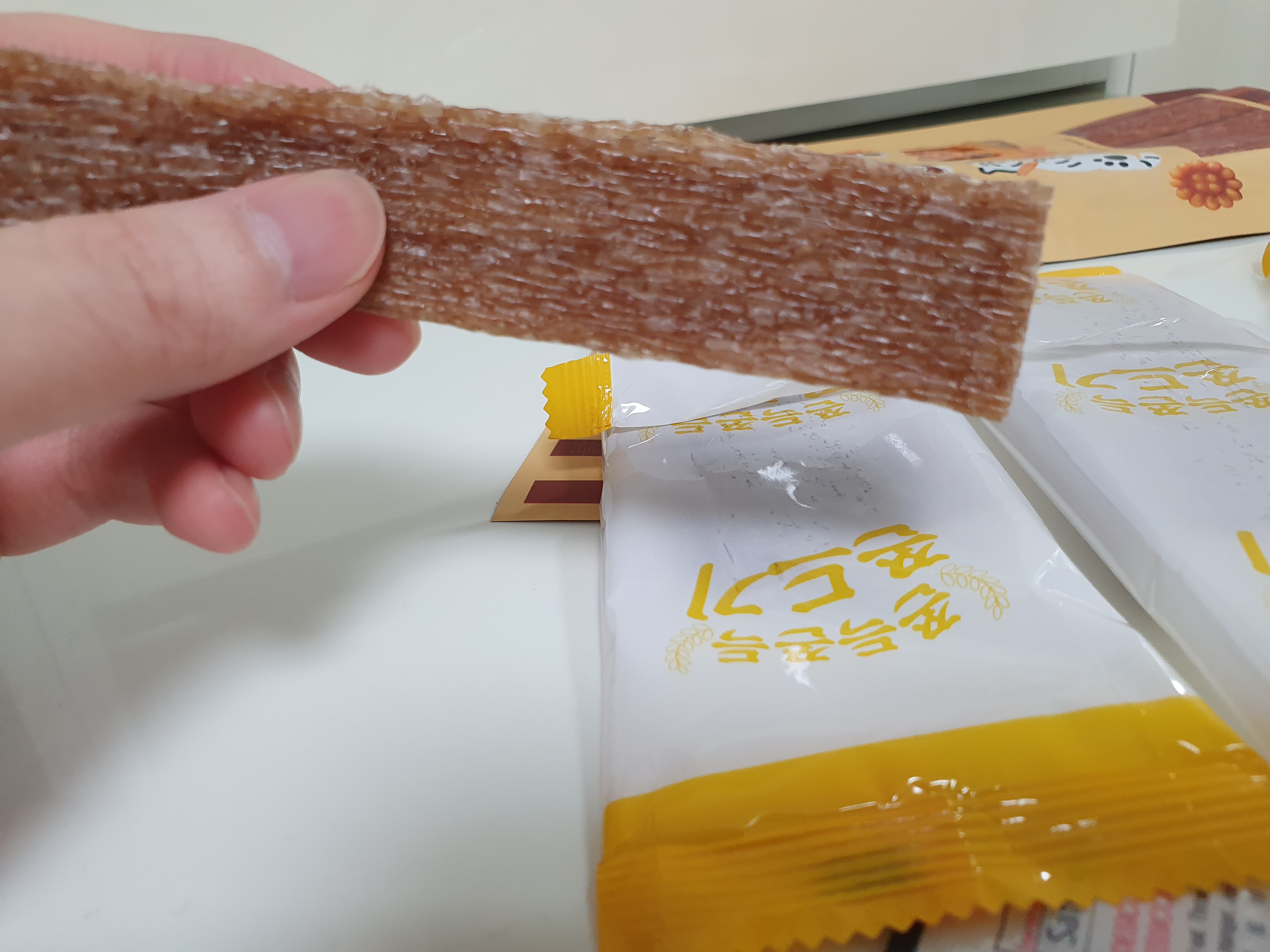 낱개 포장이 되어있기는 한데 큰 포장을 뜯어서 낱개 포장된 것을 오래 놔두니까 쫀드기의 탄력이 좀 사라져서 큰 봉지를 뜯었으면 최대한 빨리 먹거나 다시 밀폐용기에 담아서 보관하는 것이 좋아보인다.