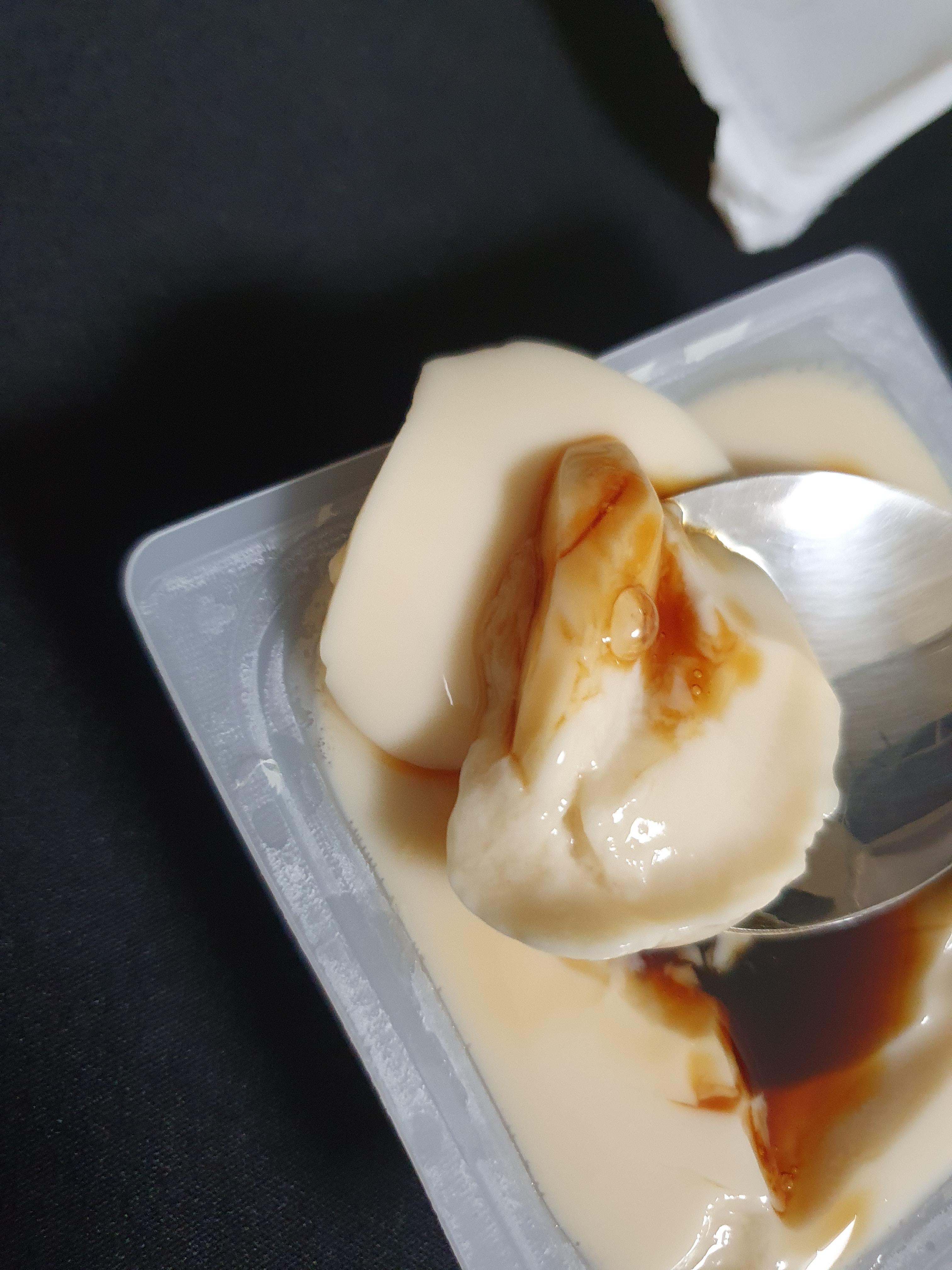 당분만 쏙! 빼서 만든 느낌이었고 이게 푸딩 자체의 맛이 그랬다. 거기다가 푸딩의 식감이 생각보다 오우야... 상상하니까 기분이 참 오묘해지는 것 같은데 생각보다 좀 푸딩의 그런 부드러운 탄력....이라고 할 수도 있긴 하겠네.