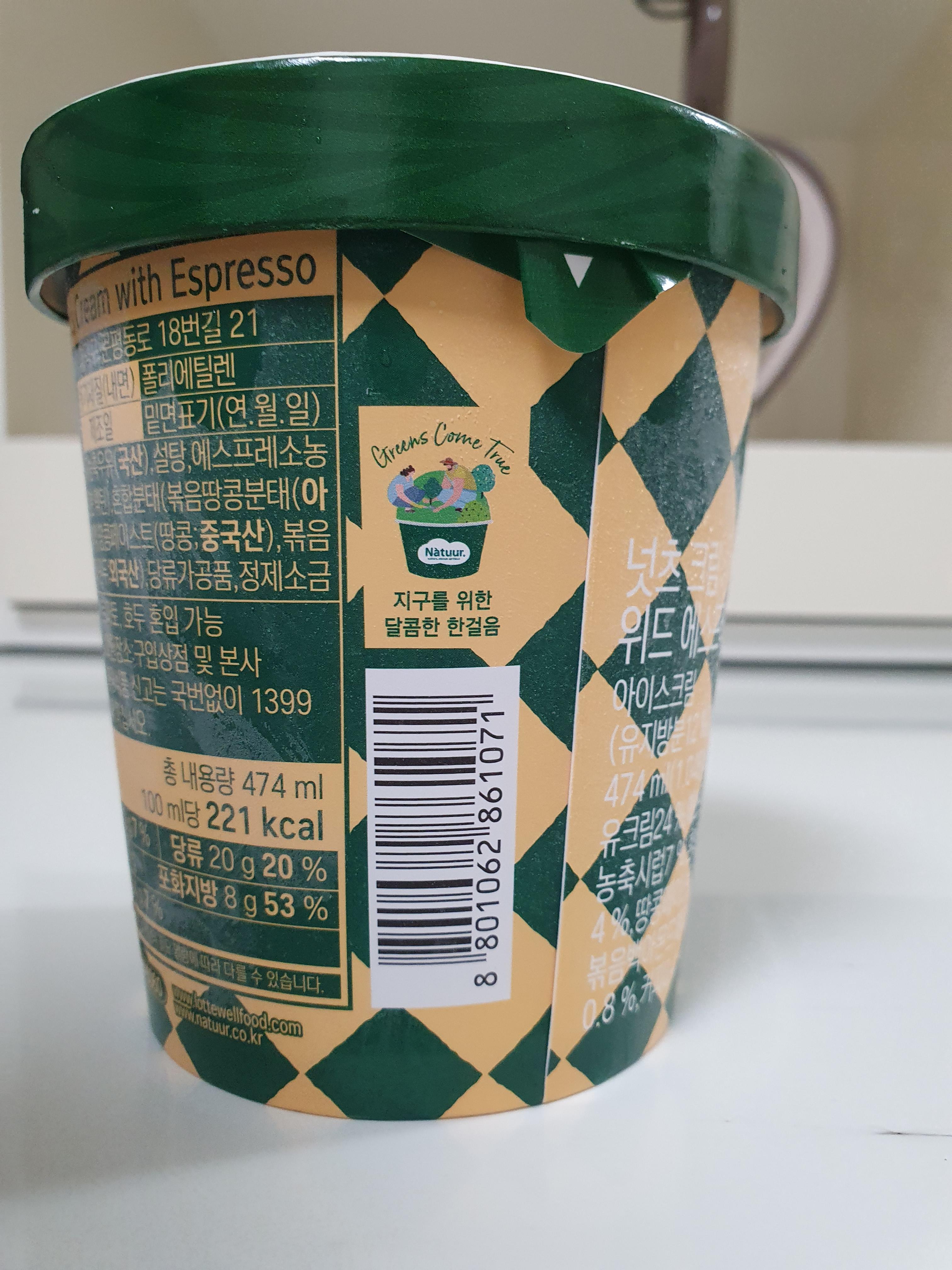 아~ 이거 궁금했는데 이렇게 먹어보네ㅎㅎ 나뚜루 '넛츠 크림 위드 에스프레소'이고 용량은 474ml이다. 가격은 높은데 맛은 확실히 있었다.