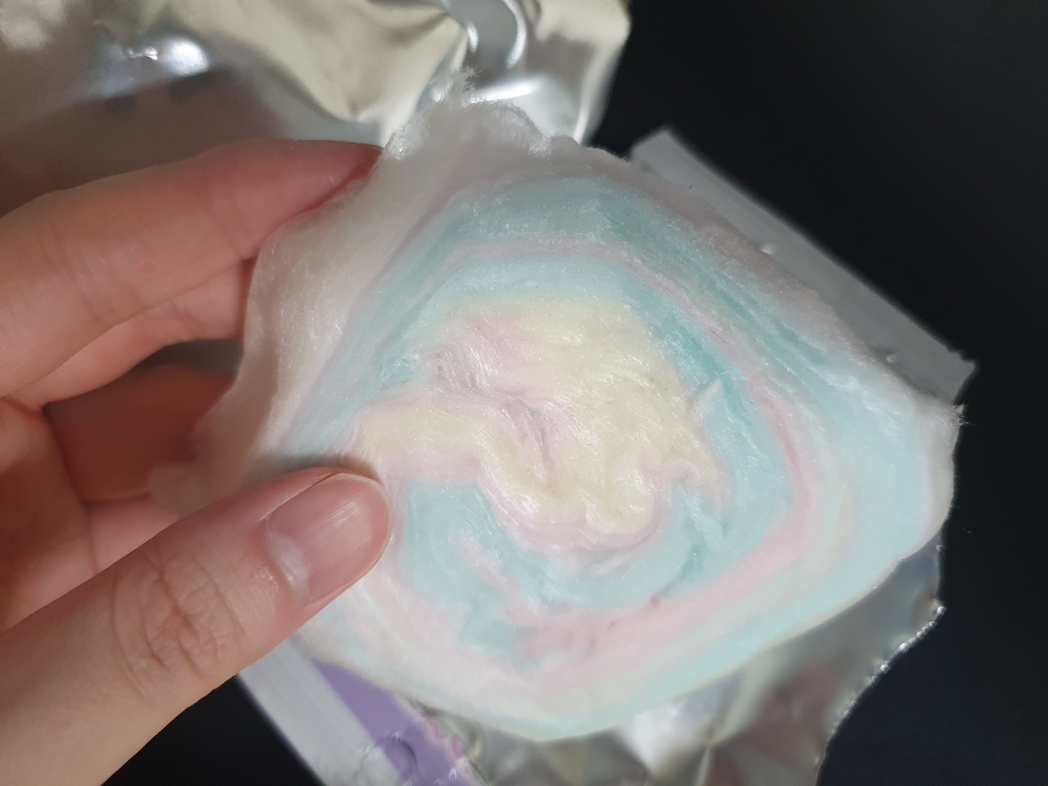 압축된 솜사탕 상품들도 많이 먹어봤지만 확실히 맛이 떨어져서 좀 걱정했는데 다행히 많이 압축된 느낌은 아니었다. 그냥 적당한 수준이다.