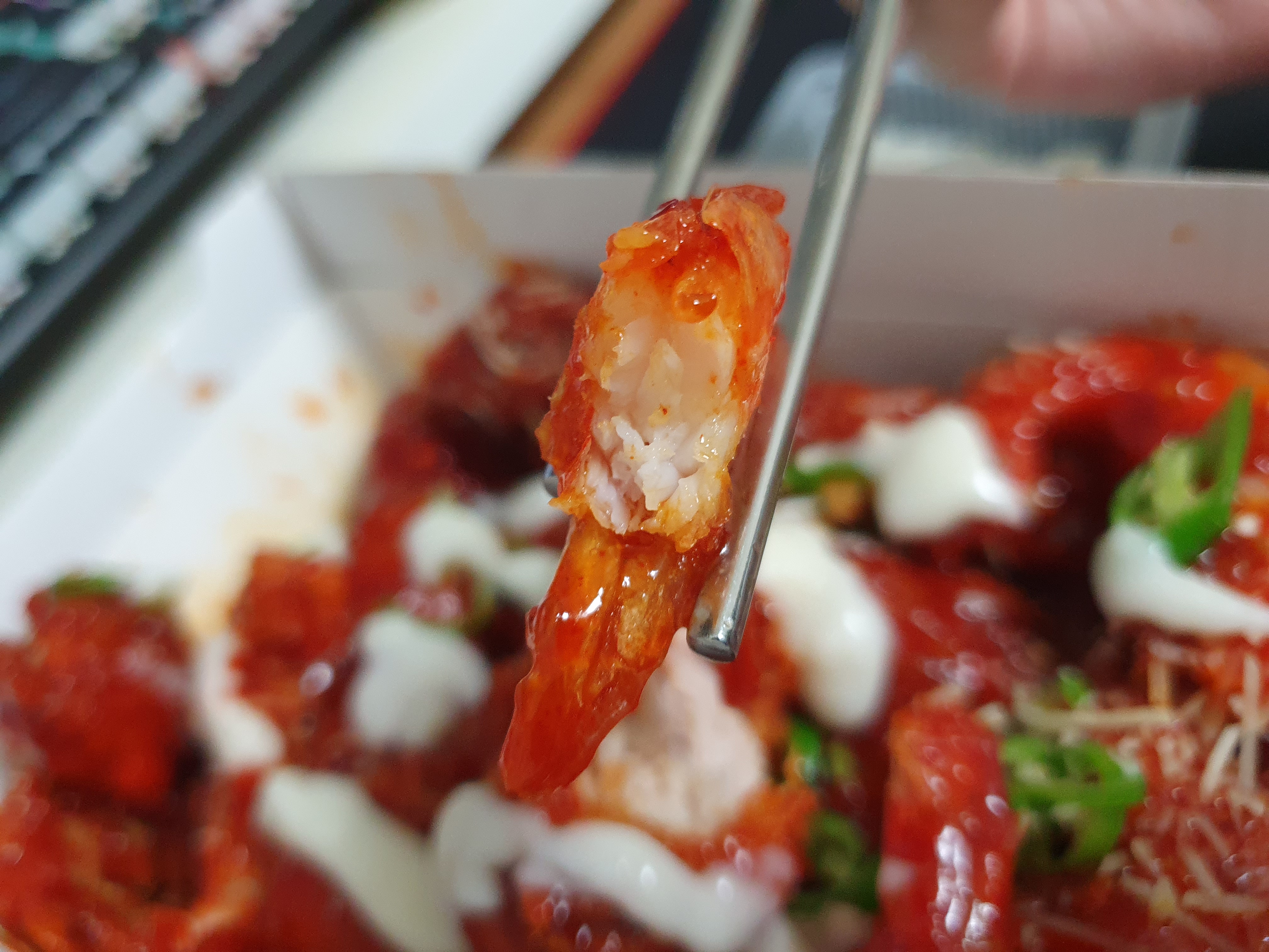 먹어보니까 닭도 잘 튀겨졌고 새우도 도톰하니 맛있고 양념도 좋은데 다음에는 그냥 새우 빠진 레드치킨 주문할 생각이다. 맛은 좋았기 때문에 레드소스는 마음에 드는데 새우가 들어가니까 이게 새우가 좀 새우 비린내가 좀 강하긴 했다.