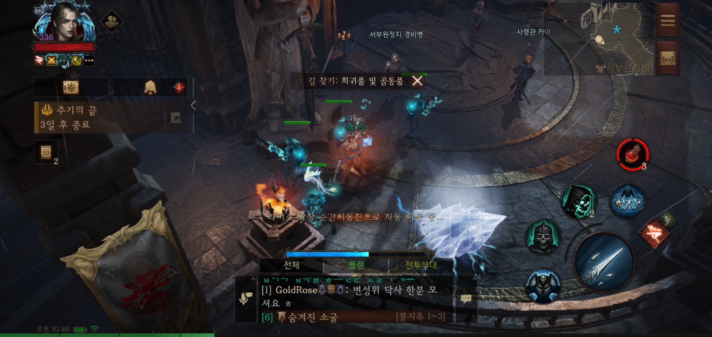 오른쪽 사진은 차원문 사진인데 정작 차원문은 안찍었다. 어쨌든 처음에는 지면에 얼음 스킬이 나가고 위 사진처럼 얼음 기둥이 쏟아오르면서 캐릭터만한 차원문이 생기는데 아주 맛도리이다.