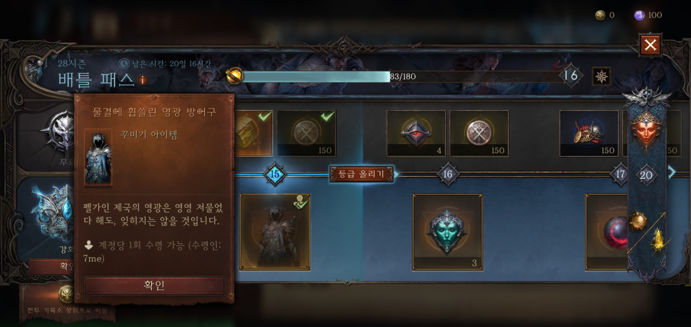 보다시피 15등급에서 물결에휩쓸린 영광 방어구를 얻을 수 있다.