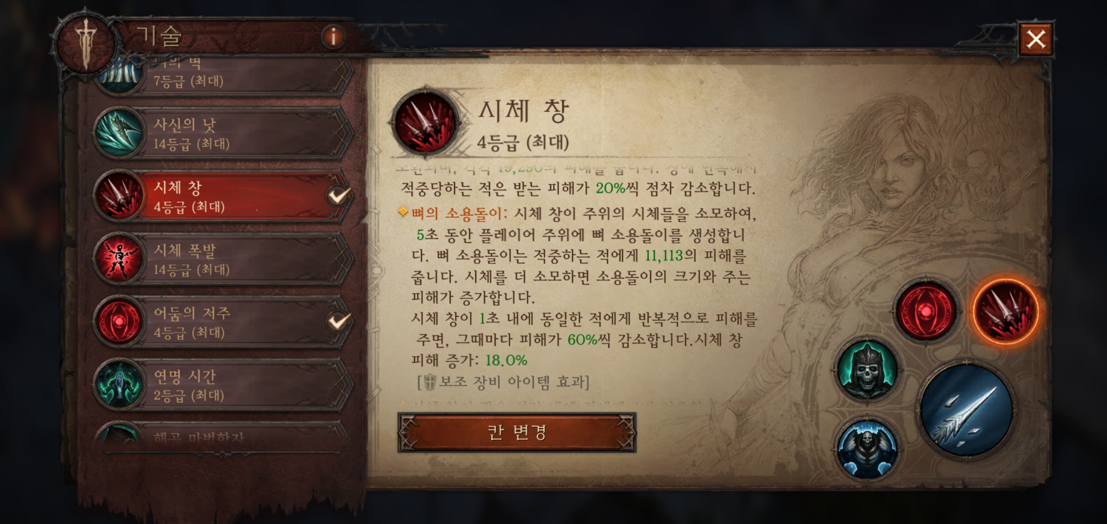 어차피 이제 어둠의 저주 전설 스킬 적용하면 오라 스킬로 변경되면서 시체를 자동으로 생성하기 때문에 시체창을 쓰기가 아주 수월해졌다.