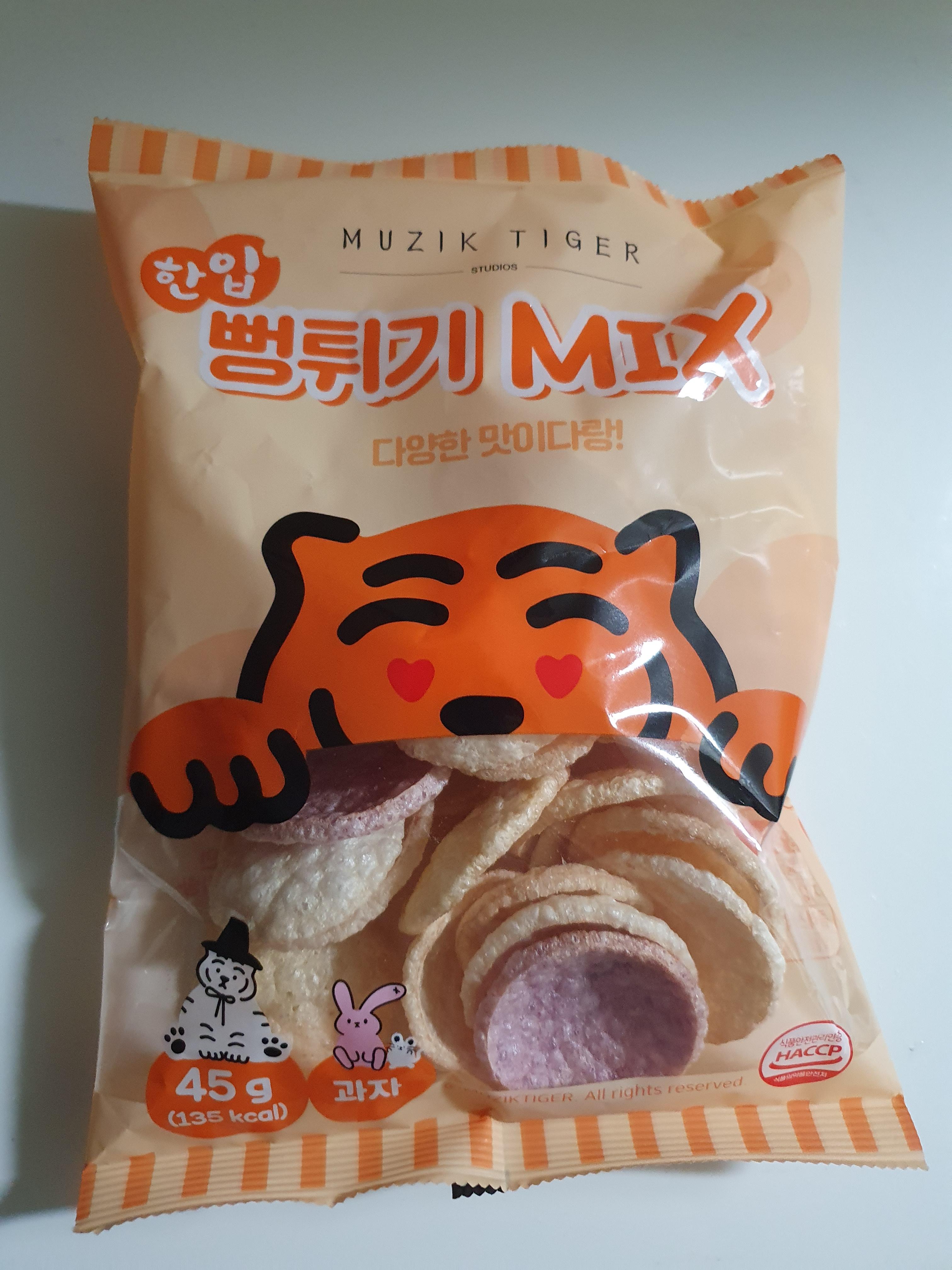 달콤함이 좀더 강한 뻥튀기였다. 원래도 달콤함은 좀 있긴 한데 무직타이거 한입 뻥튀기 믹스는 조금더 달콤함이 있는 것 같다. 아니면 모양이 작아서 더 그렇게 느꼈던 것일 수도 있는데 어쨌든 나로써는 달콤함이 더 강하게 느껴졌다.