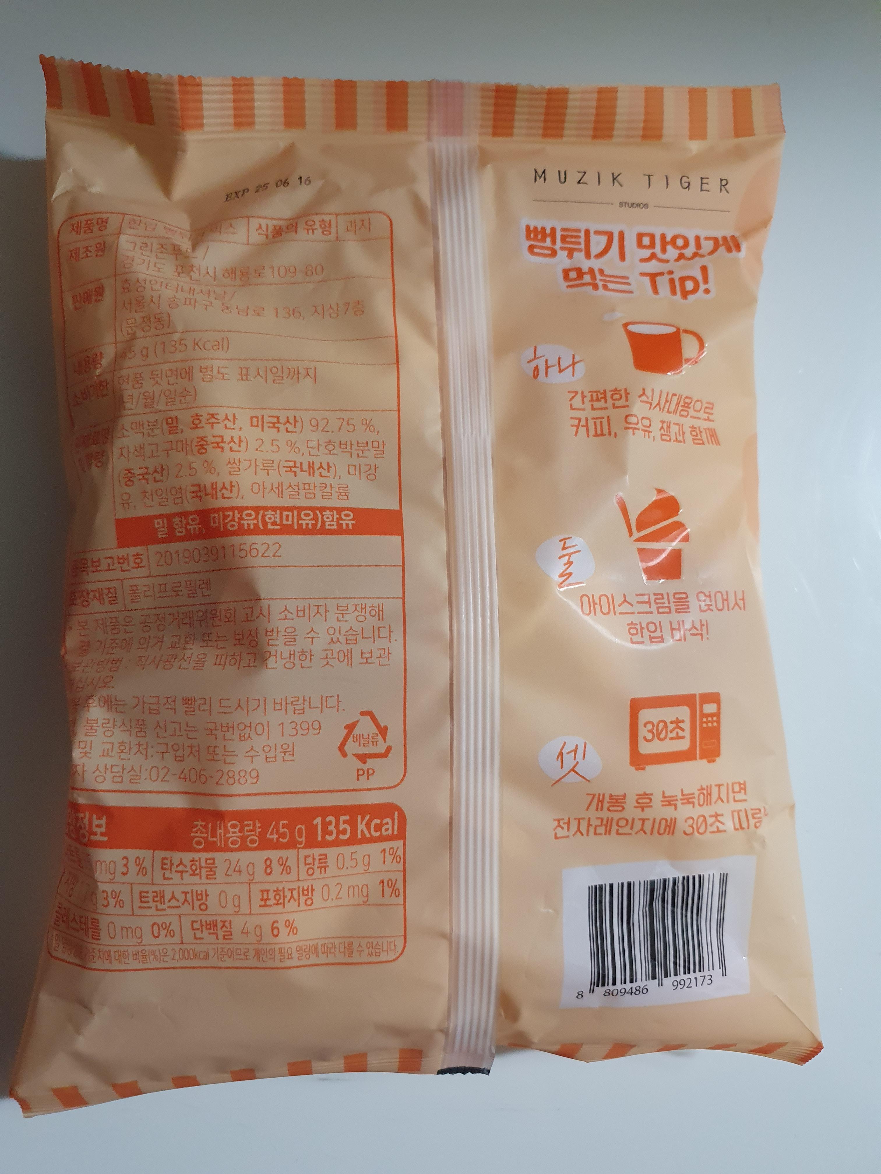 그러니까 완전 바삭함 100%인 건 아니지만 괜찮았고 이거는 복불복이 있을 수 있다는 얘기이다. 뭐 전자레인지에 조금 돌리면 바삭함이 살아난다고 적혀있긴 한데 돌려봤으나 오히려 식으면서 더 눅눅해져서 그냥 원상태로 먹는 게 나은 것 같다.