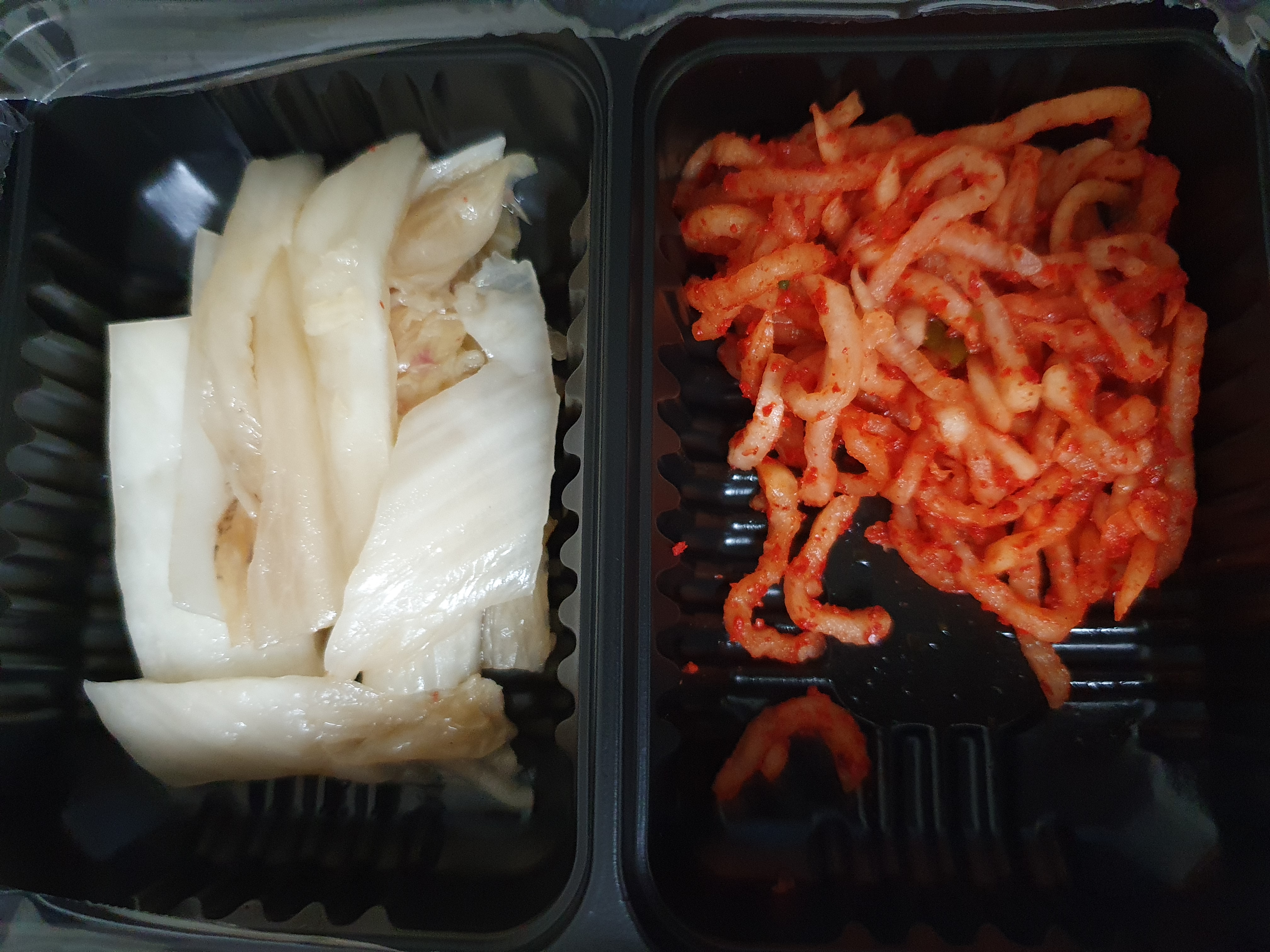 그래서 백김치도 같이 주는 것 같은데 백김치도 매우 맛있었다. 적당히 한 번씩 먹어주면 입안을 중화시켜 주고 무생채도 뭐 말할 게 있나~ 웬만한 반찬가게들이 좀 배웠으면 할 정도로 아주 맛있었고 역시나 모든 음식들은 프레쉬했다.