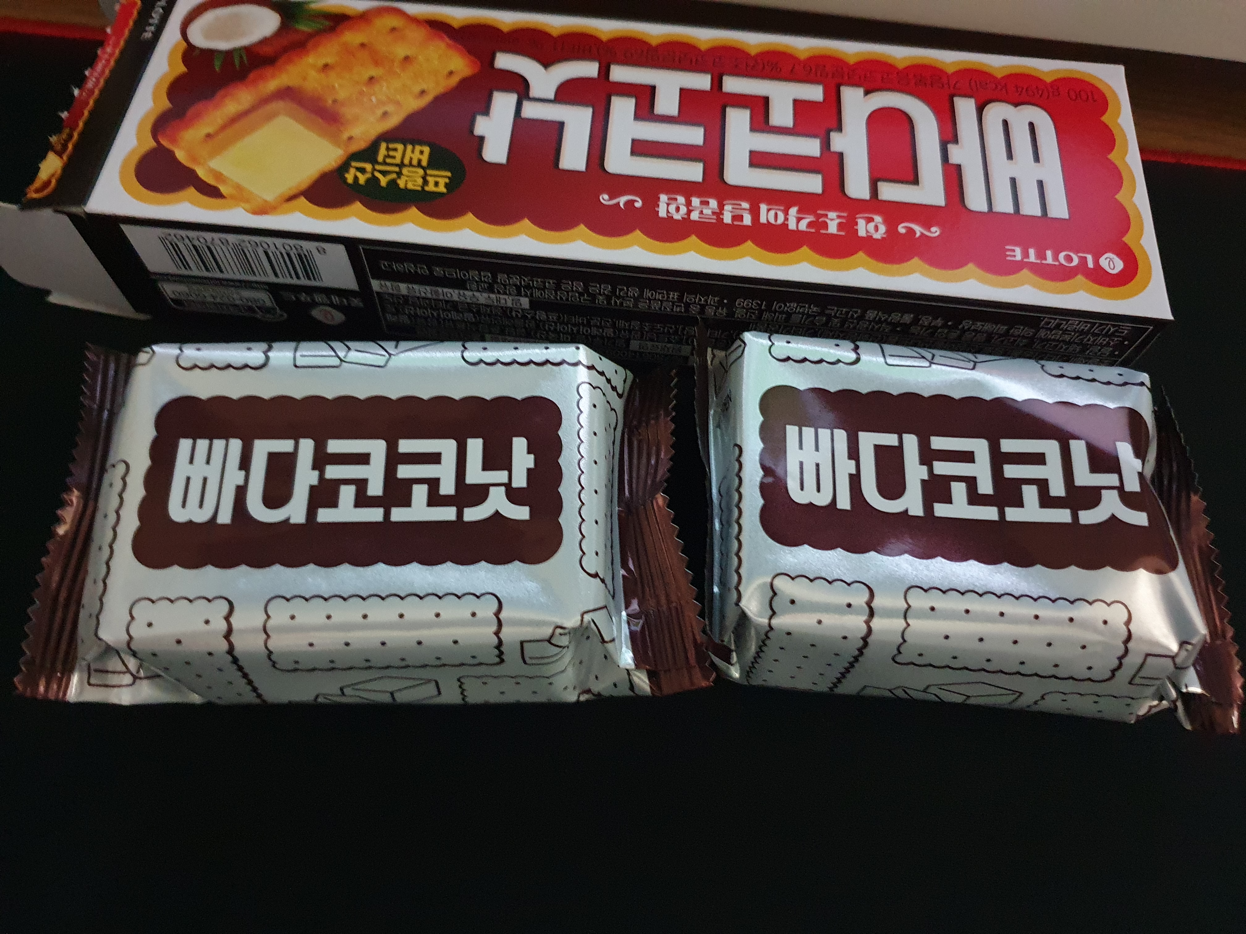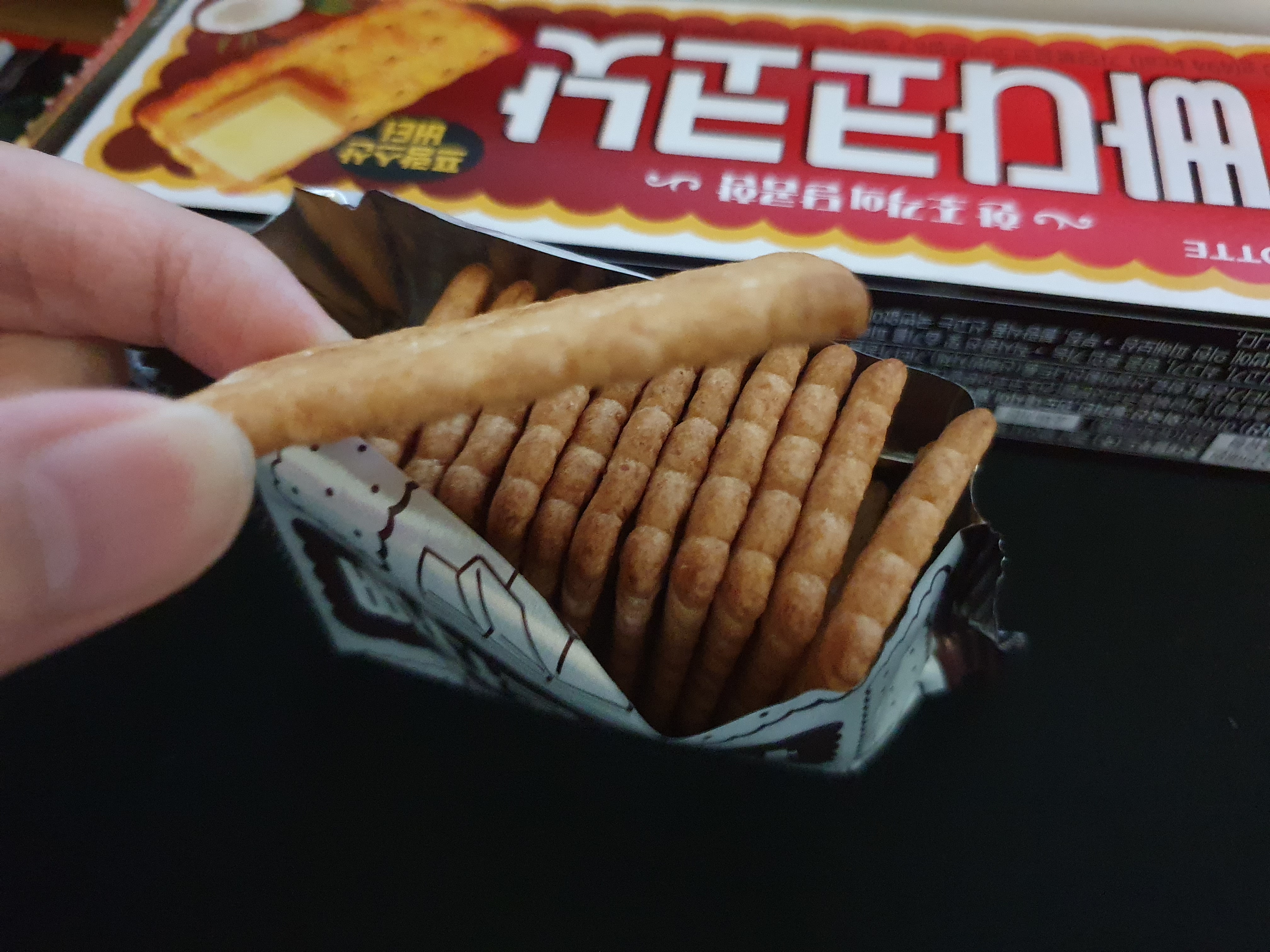 빠다코코낫 맛의 최대 특징은 역시 달콤하게 느껴지는 설탕막과 은은한 코코낫 향이다. 과자 자체는 그냥 노말한 비스킷이지만 이것도 잘 생각해보면 바삭하니 아주 맛난다.