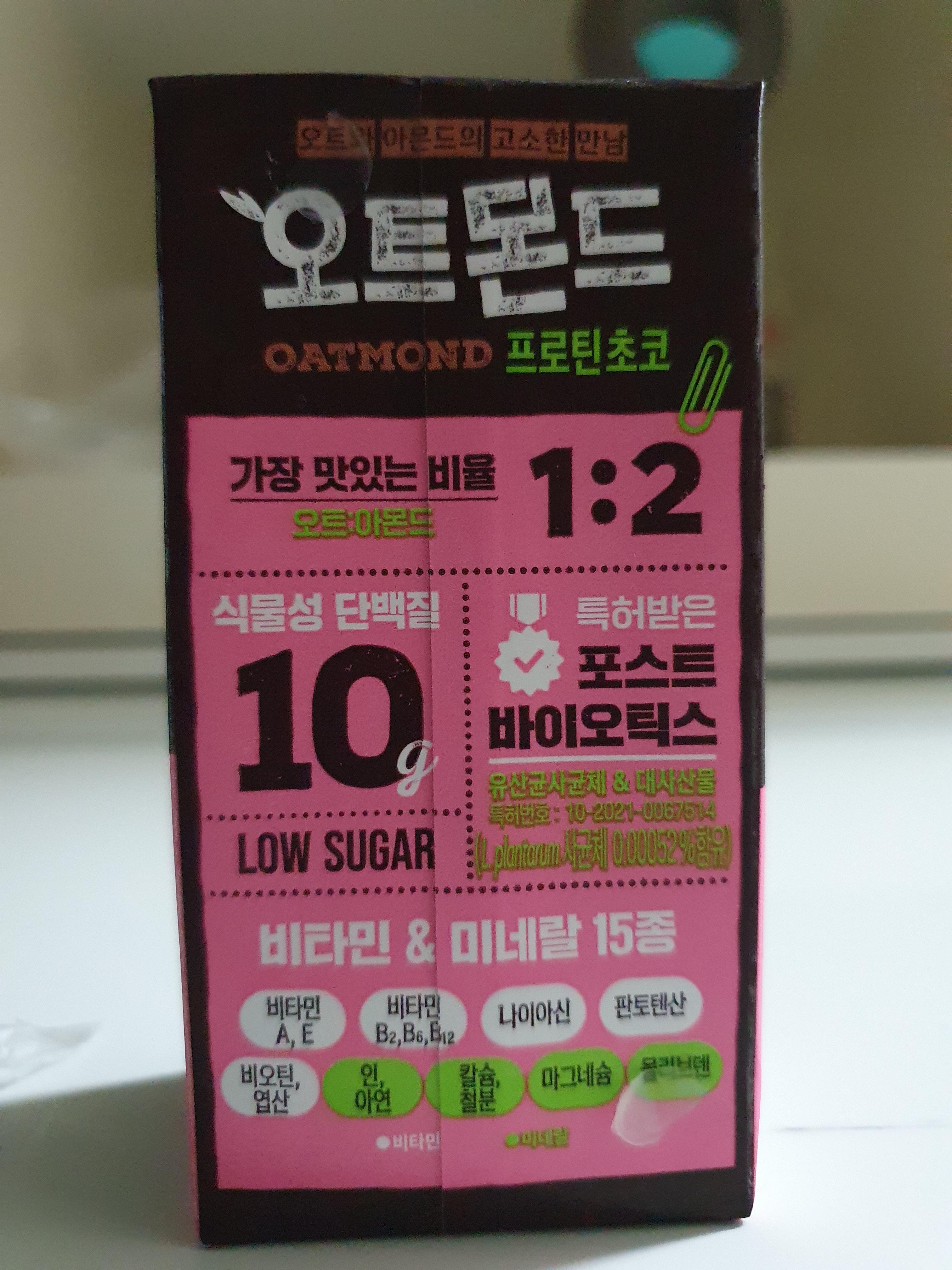 가격은 1700원 정도이고 190ml이다. 양이 많지는 않다. 참고로 허쉬드링크도 프로틴 버전있는데 그것도 프로틴 맛이 슬쩍 나긴 하지만, 허쉬초콜릿 맛이 훨씬 강해서 그거는 꽤 많이 구매해서 먹었었는데 오트몬드 프로틴 초코는 진짜 프로틴 맛이 빵빵했다.