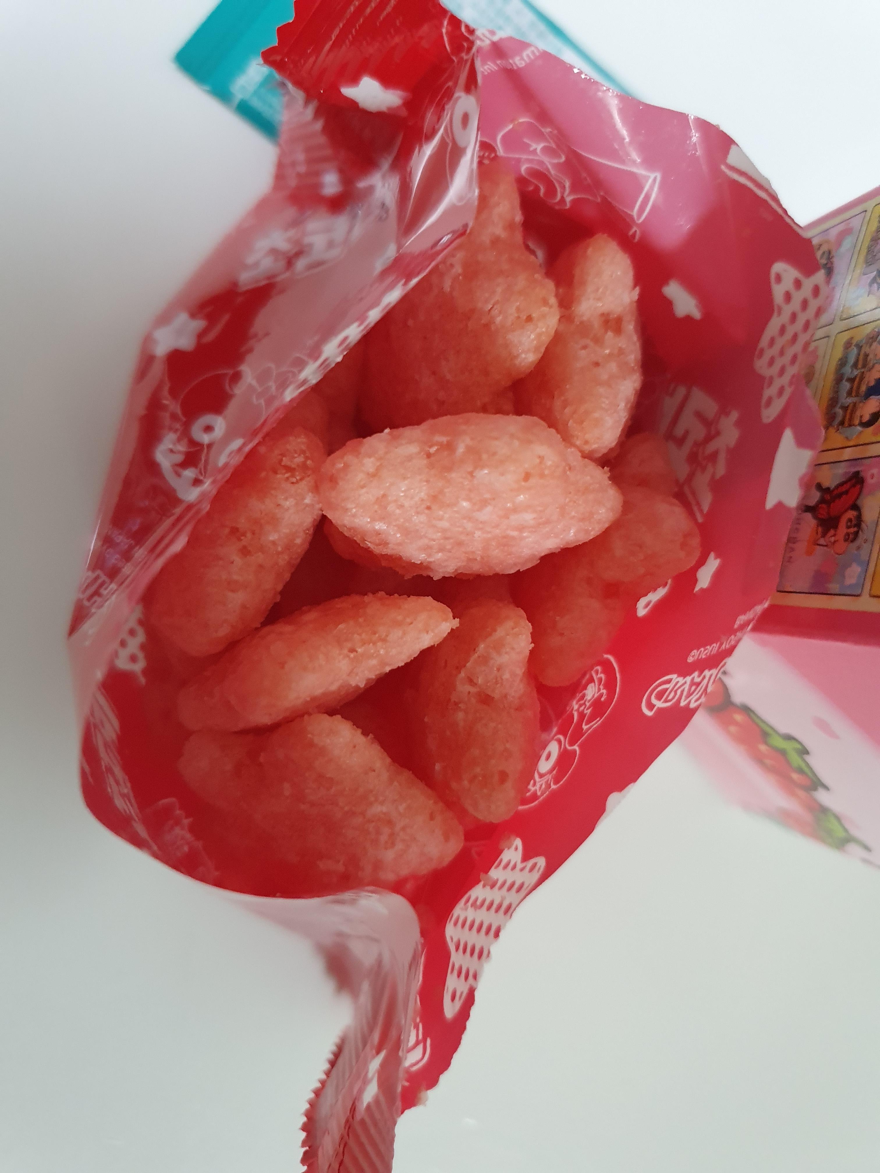 과자봉지 뜯어보면 싱그러운 딸기향이 슬쩍 난다. 진짜 무슨 설탕 섞은 딸기우유 과자에 부어버려서 굳힌 그런 맛이다.