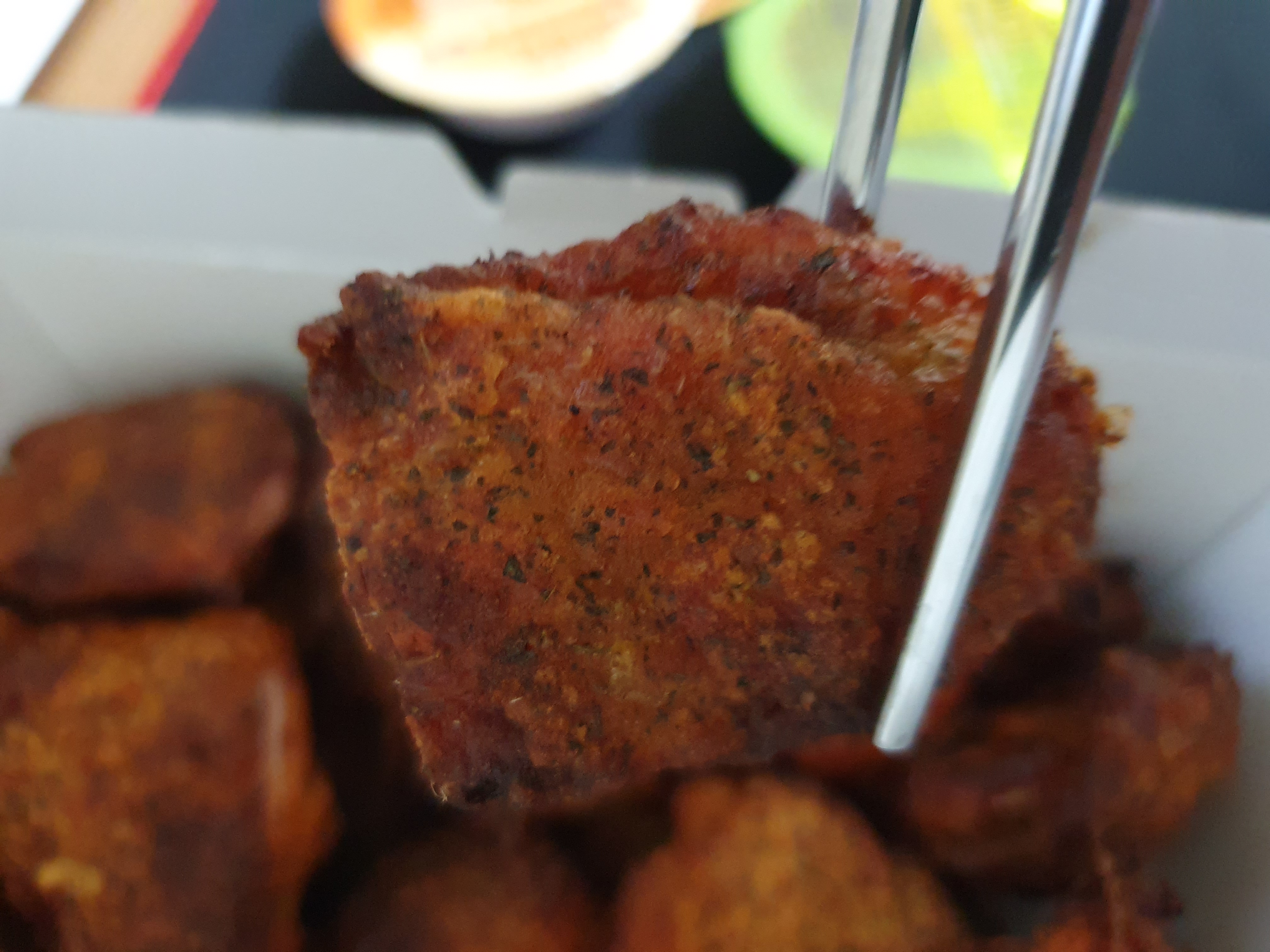 물론 확실히 뼈가 없다보니까 먹기는 더 편하고 이게 마치 치킨너겟이나 치킨휠레 같은 거 먹듯이, 튀김옷 두껍게 있는 그런류의 치킨을 먹는 느낌이었는데 그 중에서 가장 최상급인 그런 맛이었다.