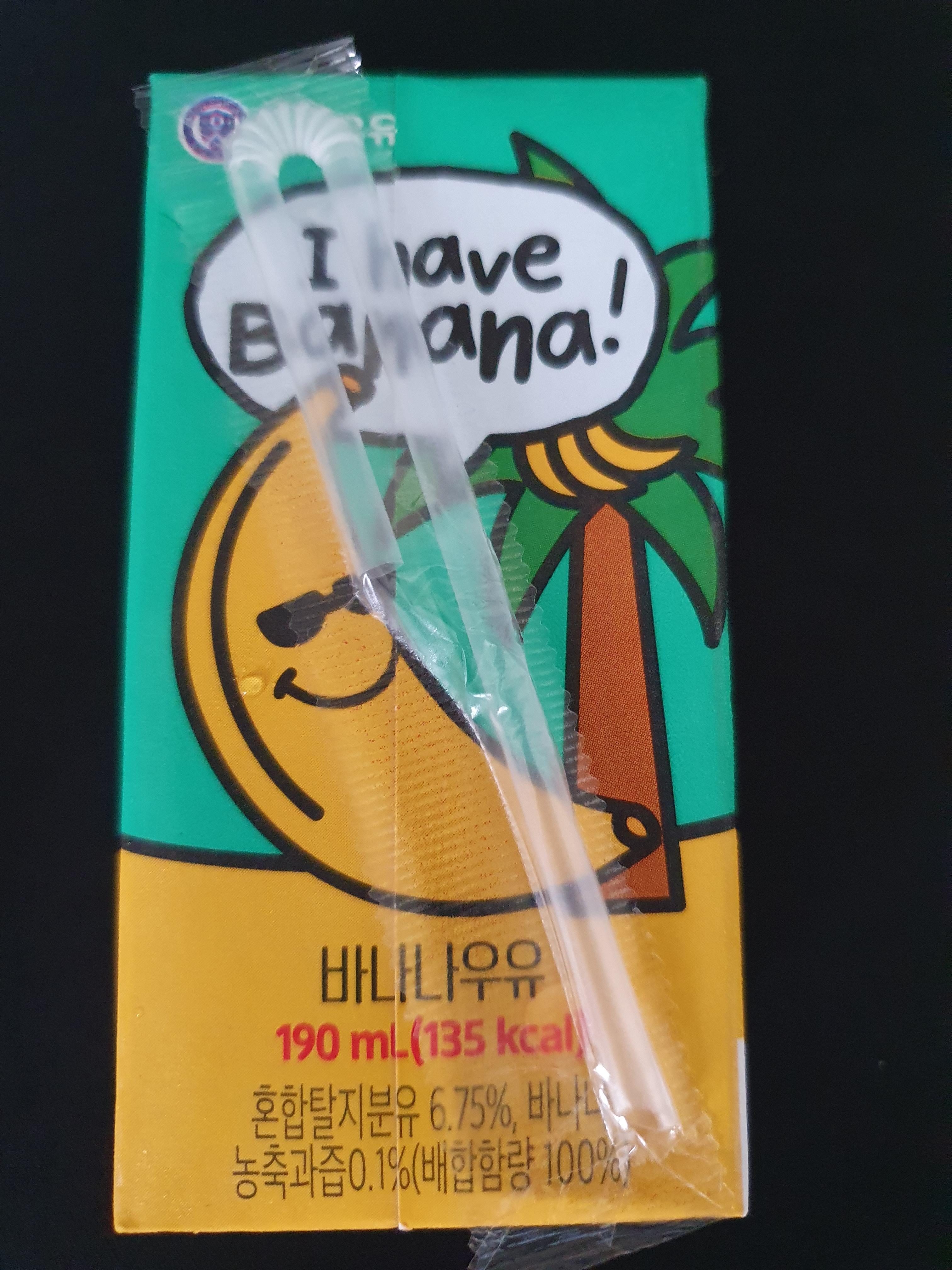 {원재료명} 정제수, 혼합탈지분유, 유크림, 설탕, 기타과당, 바나나농축과즙(이스라엘산), 글리세린지방산에스테르, 합성향료(바나나향), 안나토색소, 카라기난
