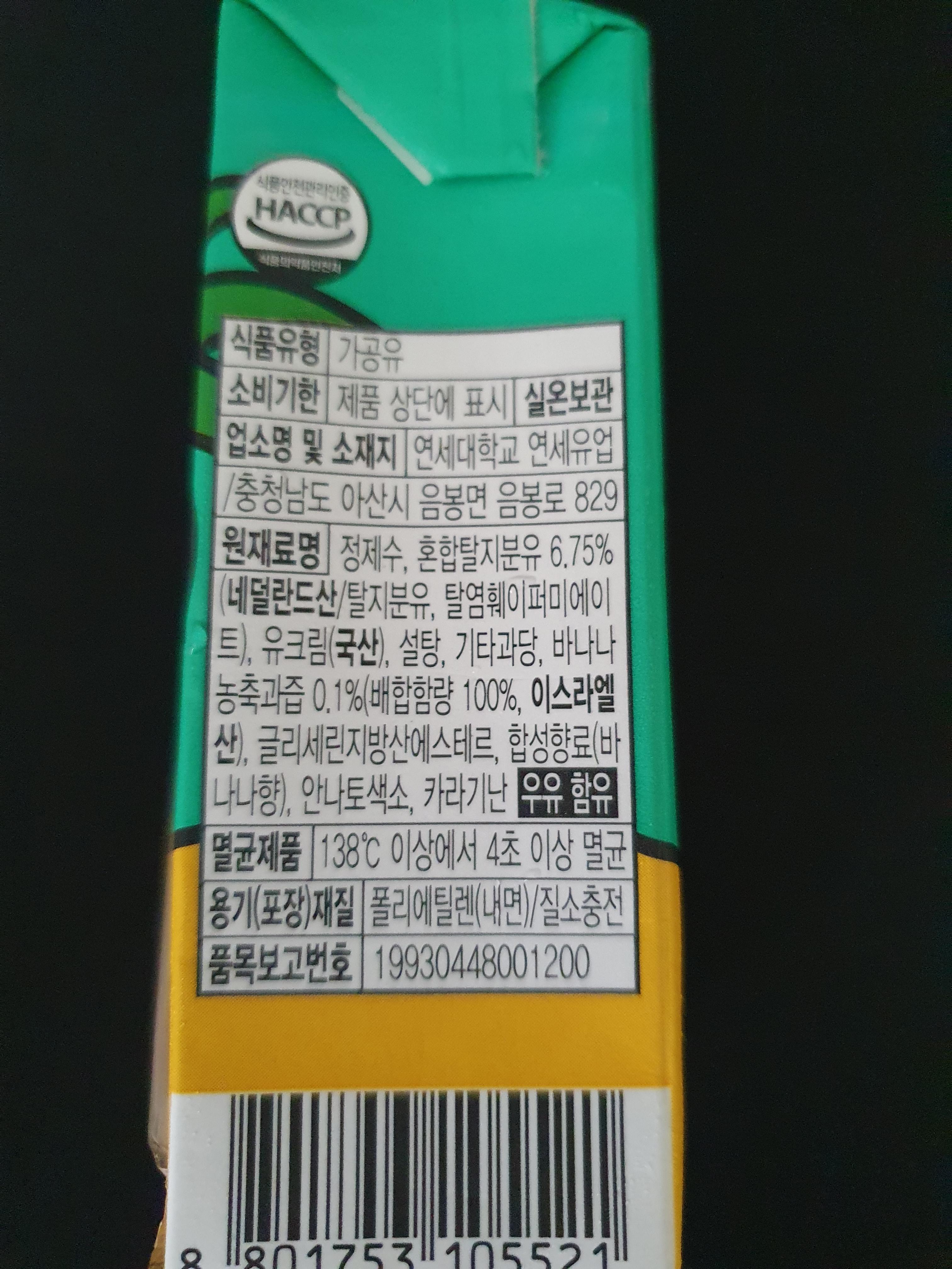 연세 바나나우유 190ml 팩이고 아마 잘 안보일 거다. 뭐 지점마다 다를 수 있지만 보니까 편의점에도 없고 개별 판매도 아니고 묶음 판매만 있다. 나는 비마트에서 구매했다.