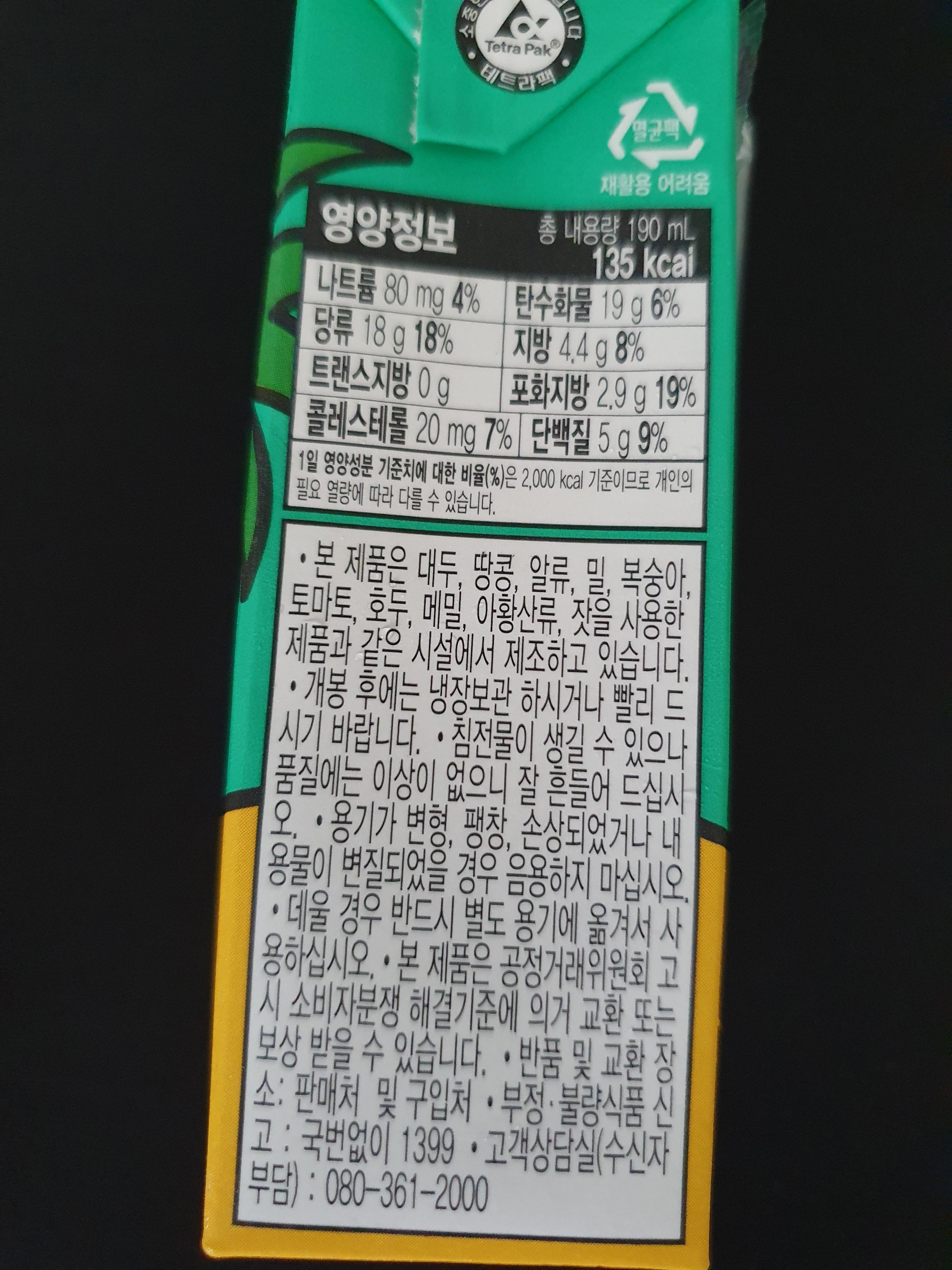 그리고 개인적으로는 팩 음료라 먹기 간편해서 좋았다. 개인적으로 팩에 들은 것을 선호한다. 맛도 팩에 들은 게 좀더 잘 유지되는 느낌이 있다.