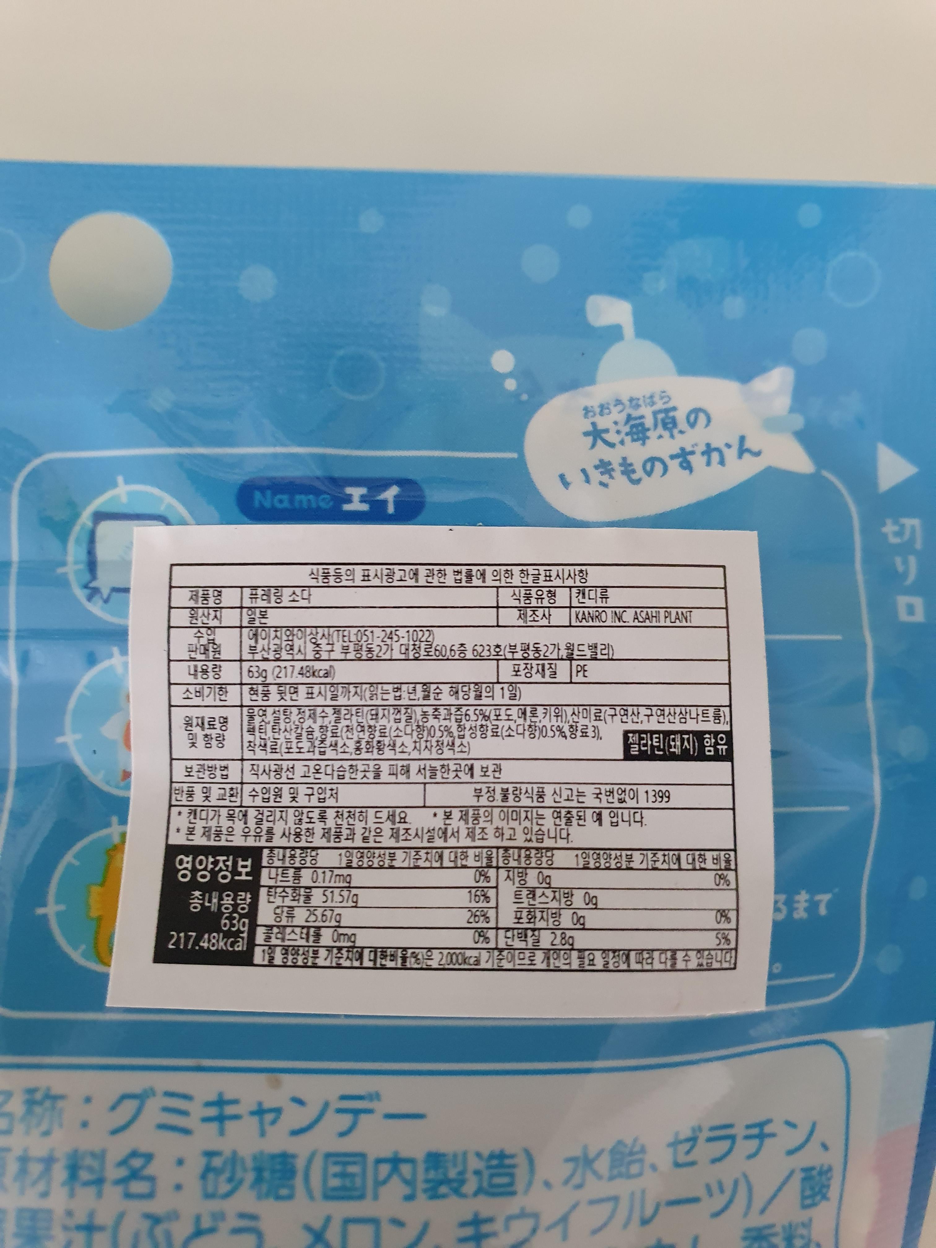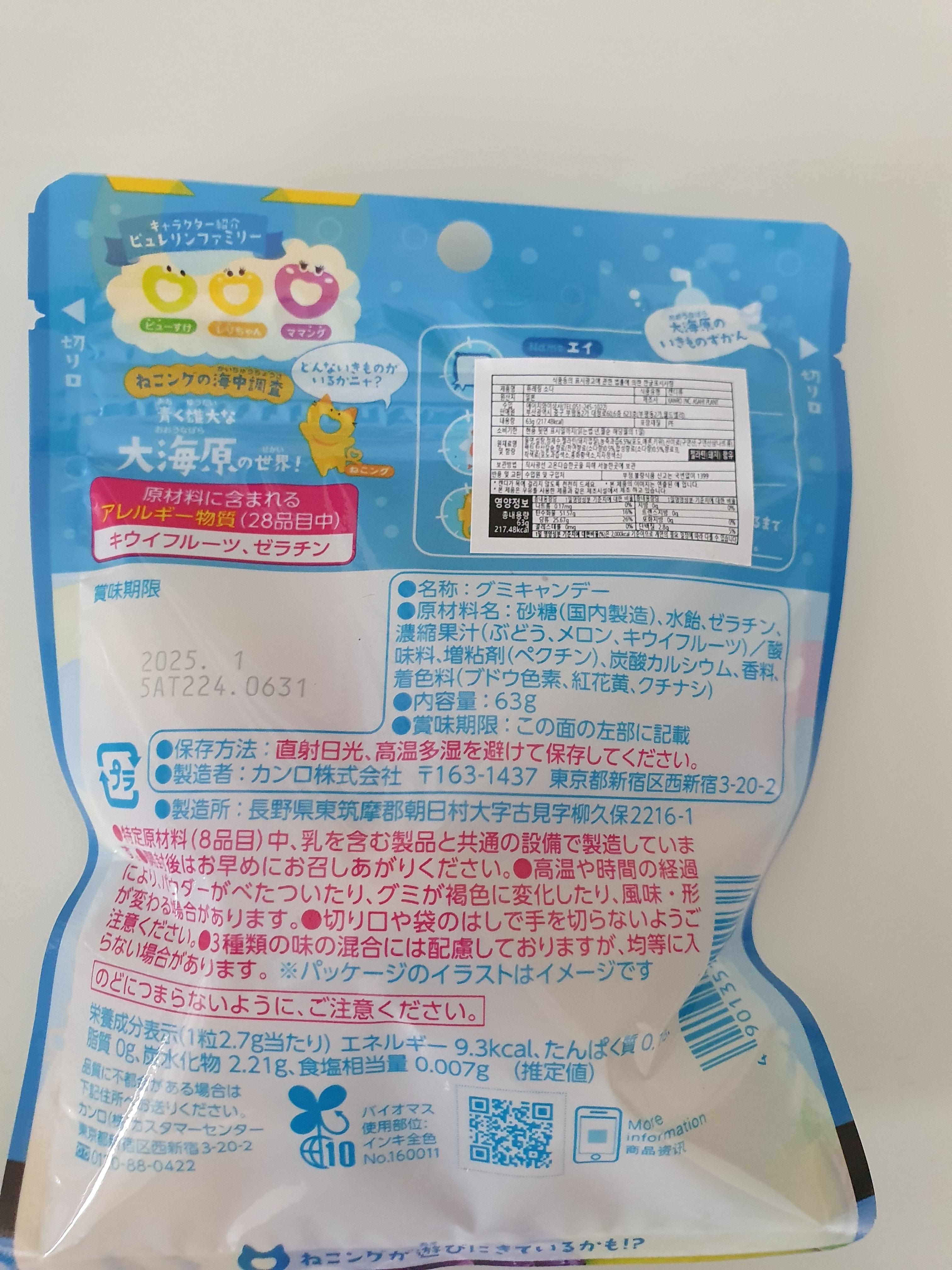 소개 내용을 보면 일본 대표 젤리라고 되어있는데 아무래도 퓨레링 소다 구미가 그렇다기 보다는 '칸로' 브랜드가 그렇다는 것이 아닐는지... 퓨레링도 유명한가? 뭐 모르겠고.