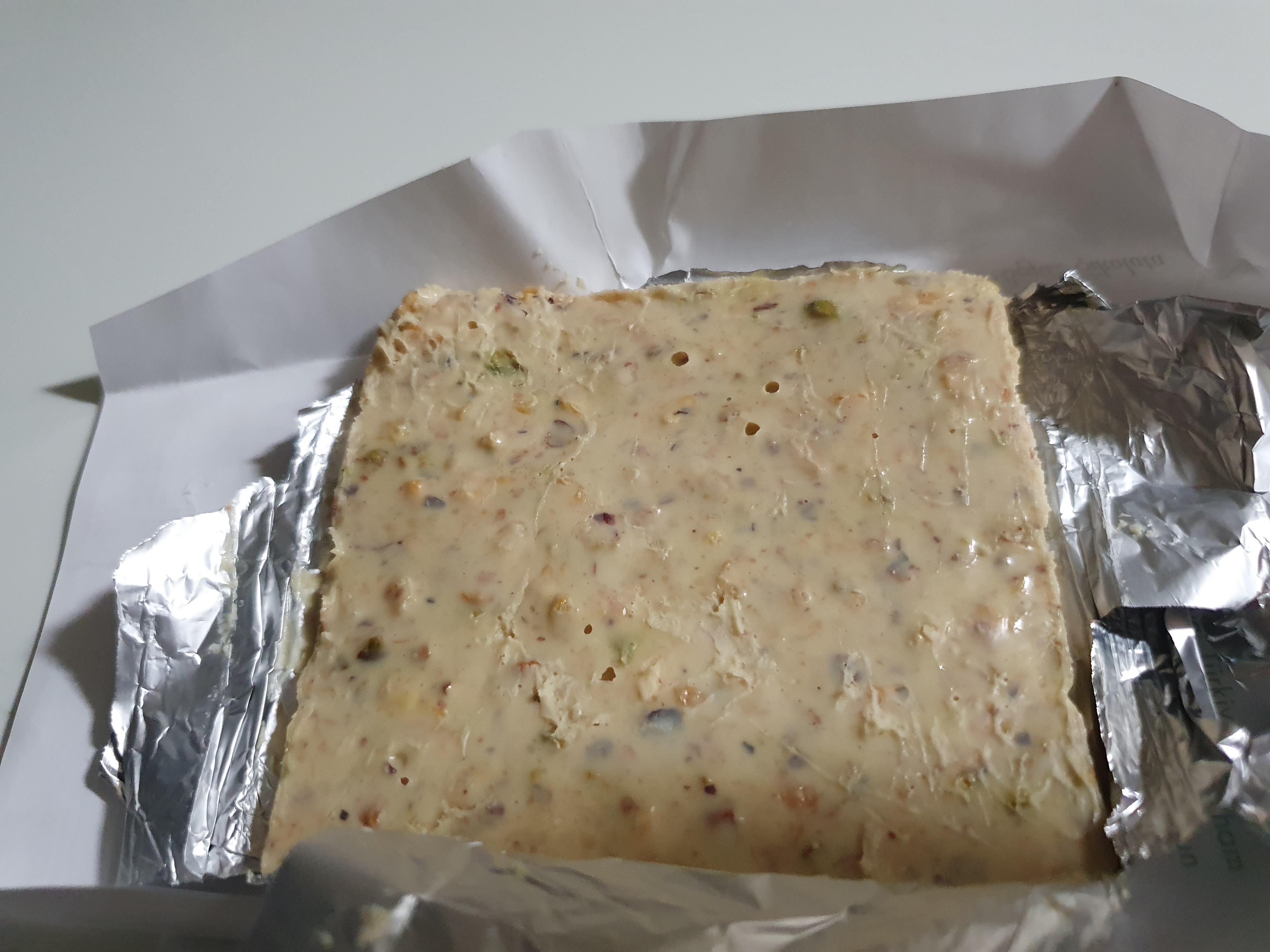 하지만 재구매는 솔직히 없을 것 같다.ㅎㅎ 내가 좀 잘못 먹은 것도 있기는 한데 정말... 달긴 달다. 그리고 생각보다 피스타치오의 풍미가 강하지가 않았고 애초에 화이트 버전은 화이트초콜릿에다가 '바클라바 도우 조각'이라고 해서 버터맛과 바삭한 식감이 있는 페이스트리가 포함되어있어서 피스타치오의 맛은 거의 그냥 정말 향 첨가의 느낌이라 그게 좀 아쉽고 피스타치오가 이게 또 큼직하게 들어가는 게 아니라 조각으로 들어가서 정말 말 그대로 생각해보다 피스타치오의 풍미가 적다.