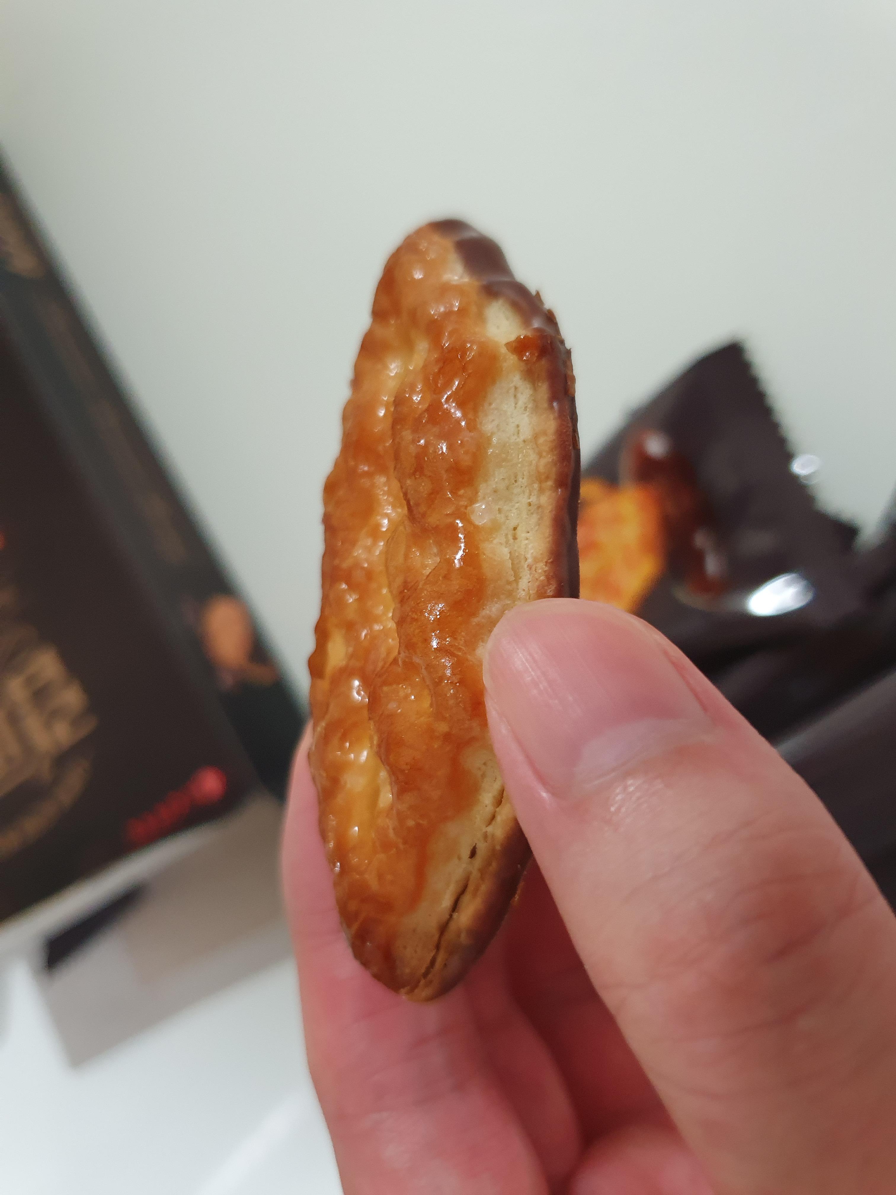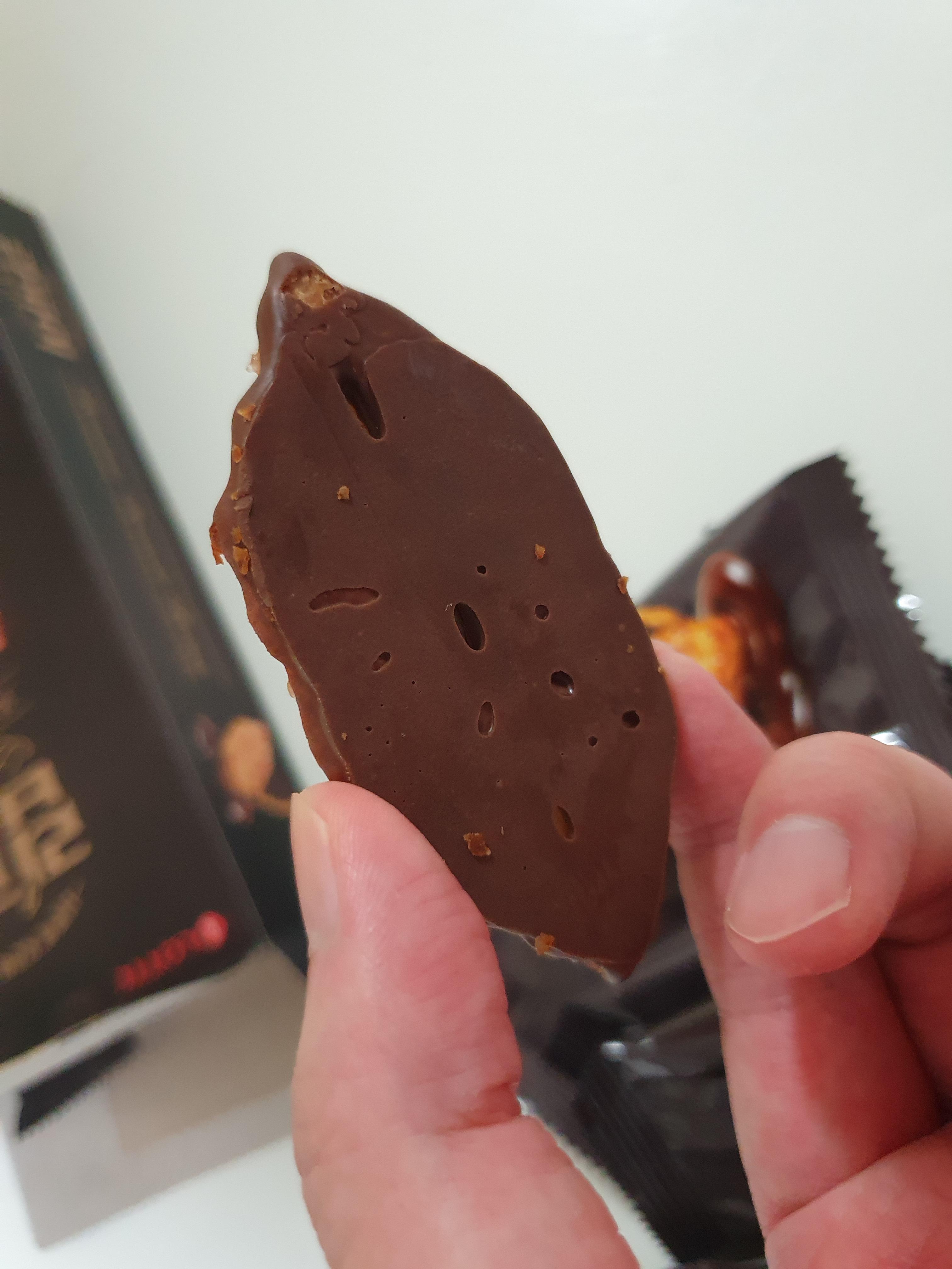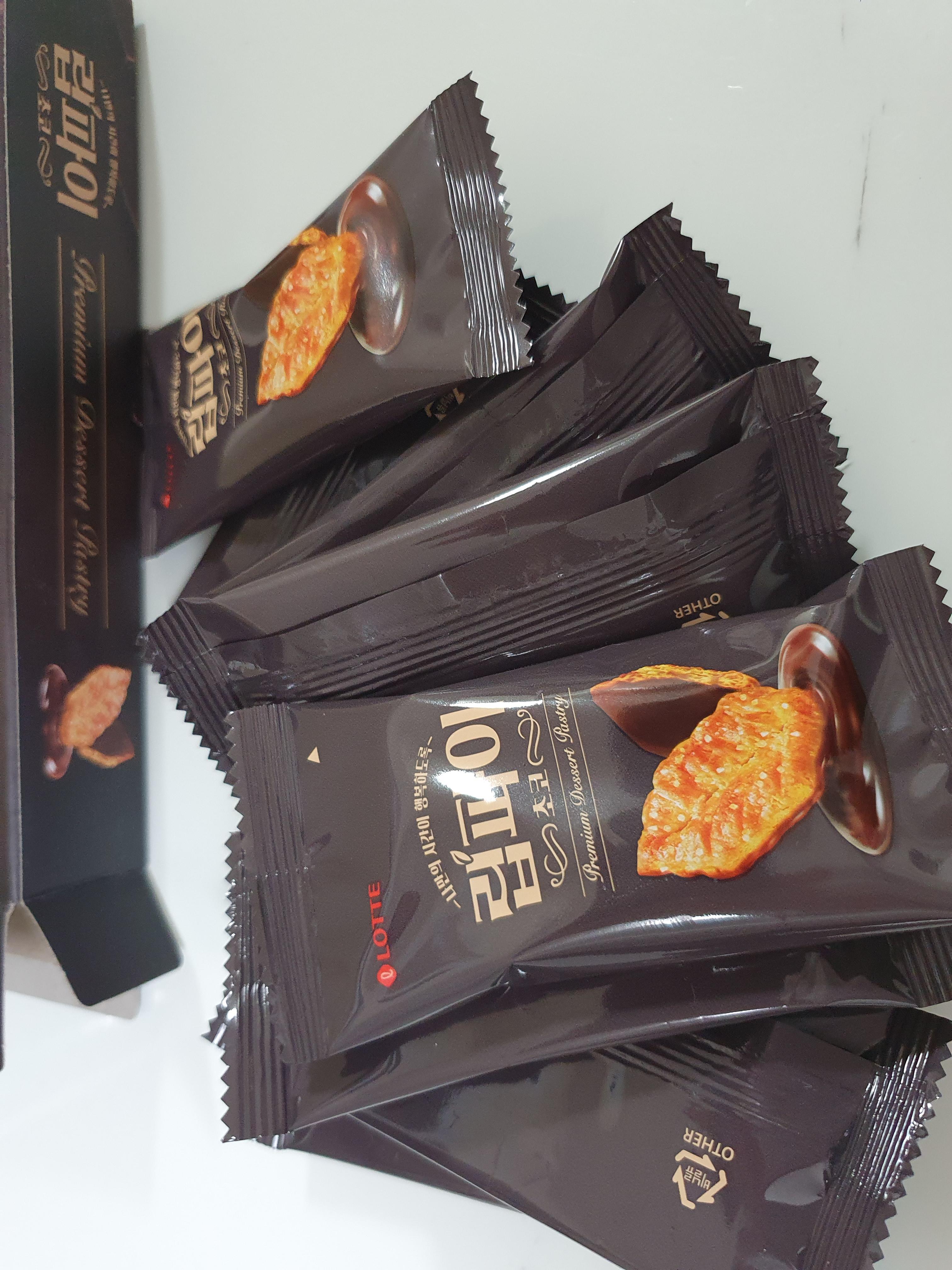 맛은 그냥 딱 이거다. 후렌치파이 과자 부분 즉, 페스츄리 부분에다가 메이플시럽 같은 아무튼 시럽이 더 두껍게 발라진 느낌에 밑부분은 그냥 퀄리티를 상중하로 보면 중하 정도 느낌의 다크 초콜릿이 발라진 느낌.