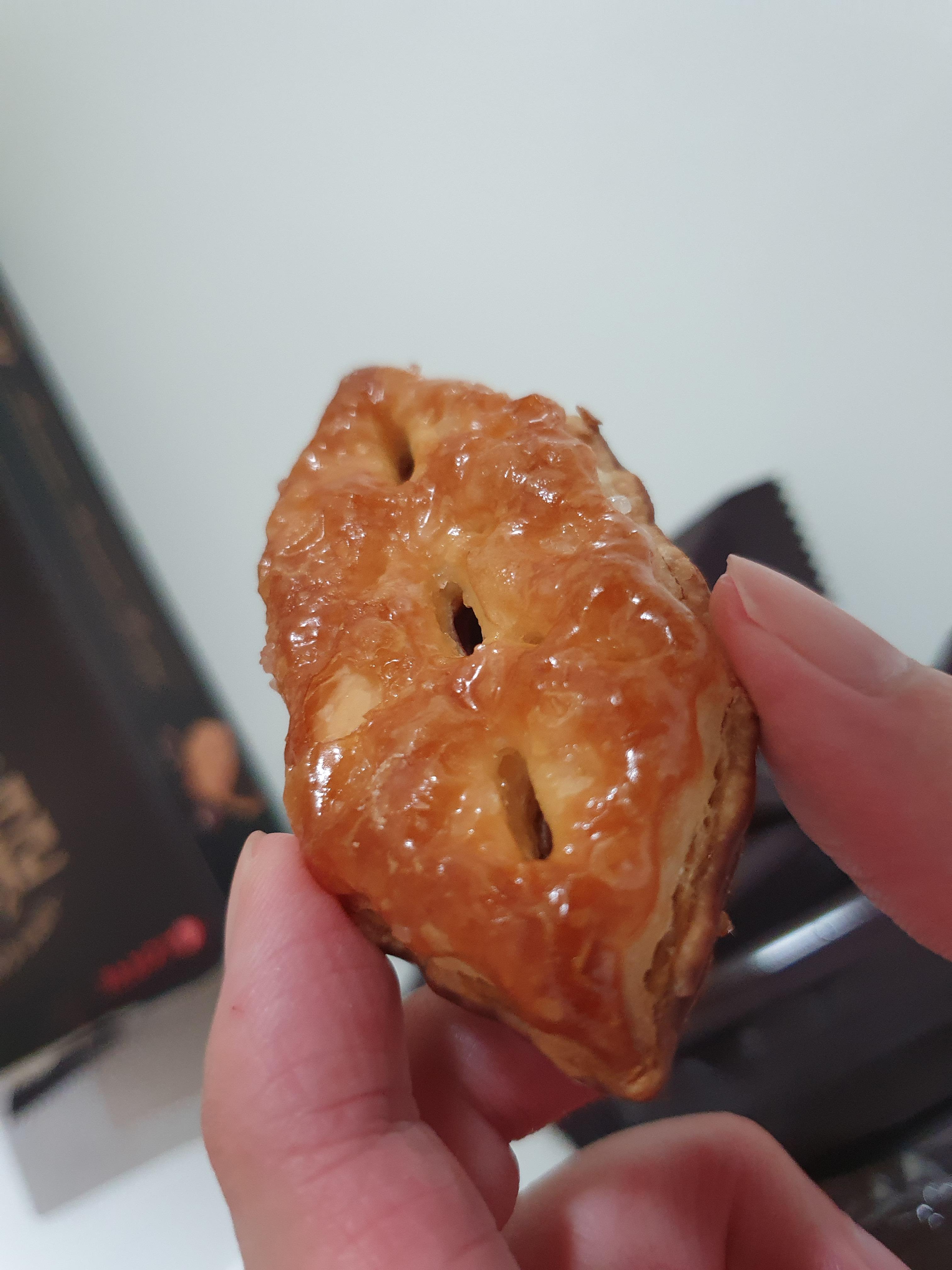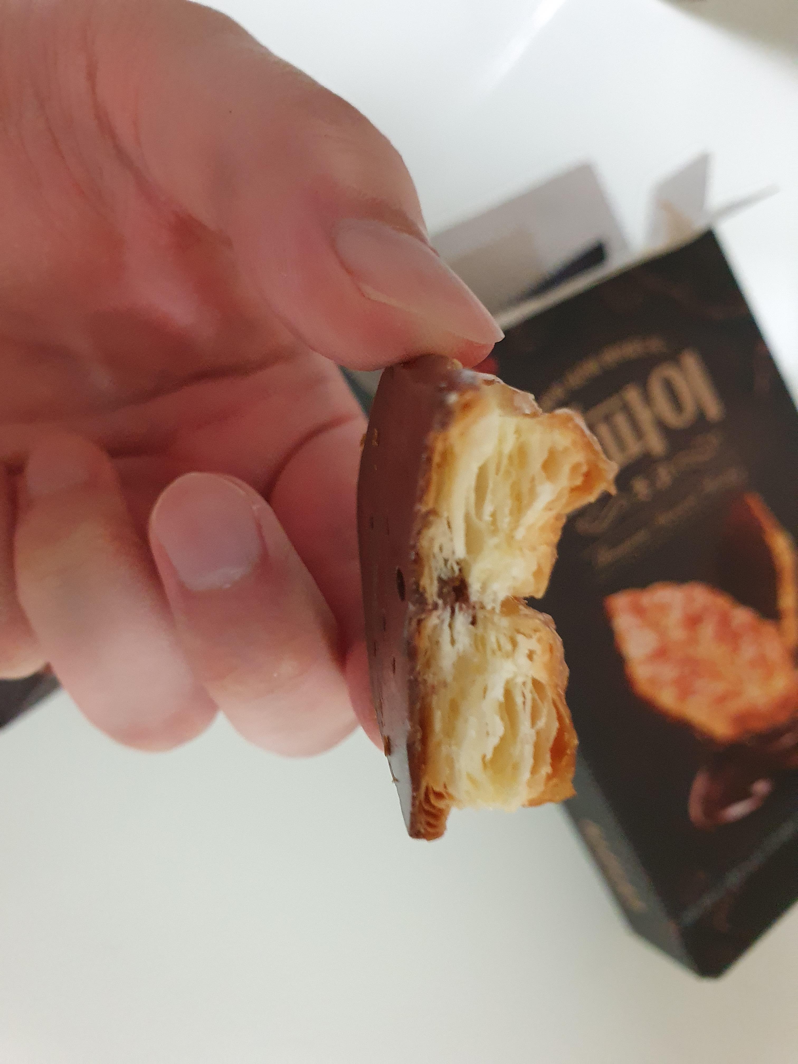 그리고 너무 두껍다. 페스츄리가... 이게 장점이 될 수도 있지만, 일단 지금 상태로 봤을 때는 페스츄리가 두껍다 보니까 많은 맛들이 중화가 많이 되어서 이거 먹어보면 생각보다 그렇게 안 달다. 물론 당연히 달달한 과자인데 아마 박스 이미지에서 느껴지는 단 맛보다는 단 맛이 적을 거다.