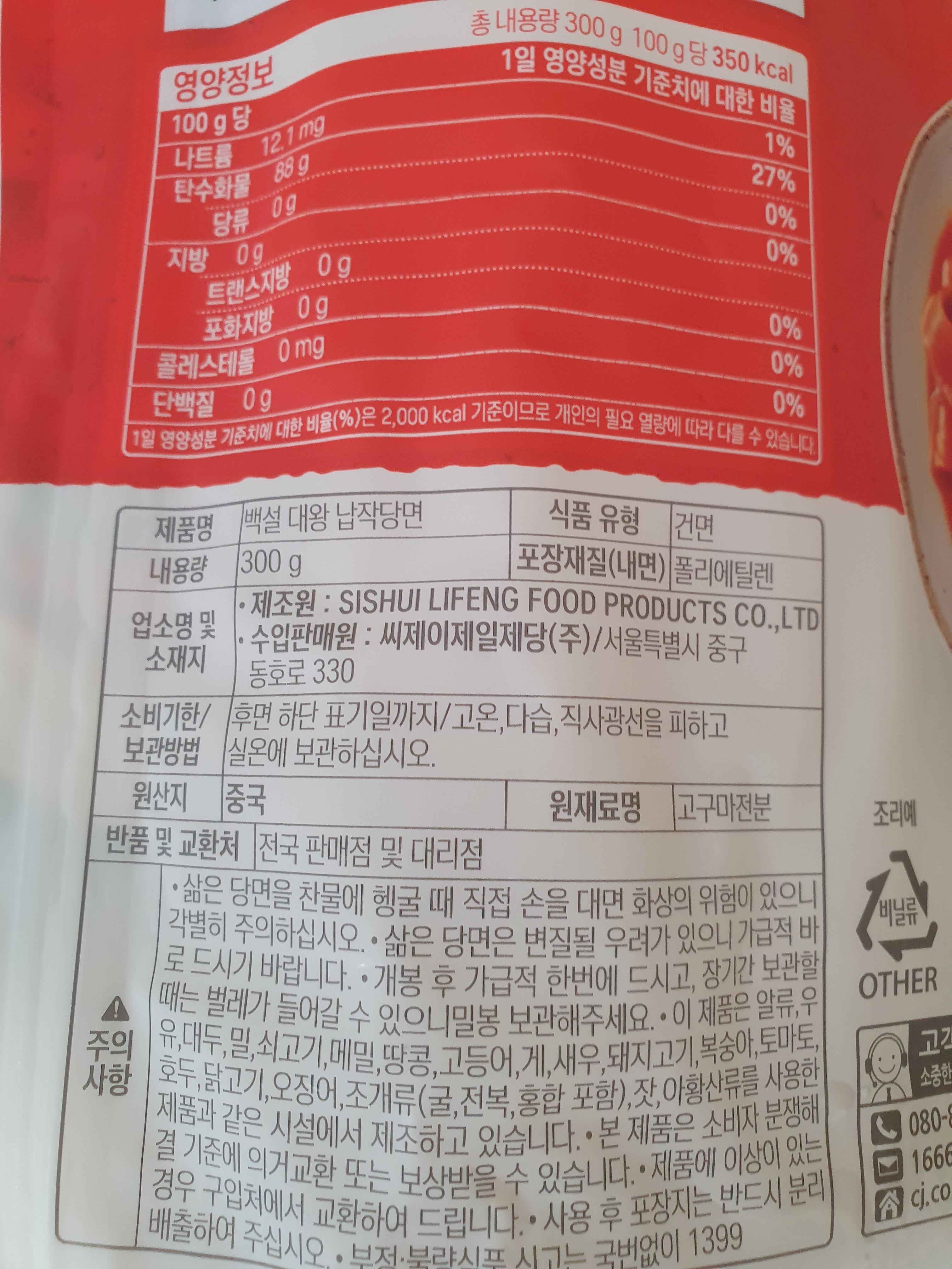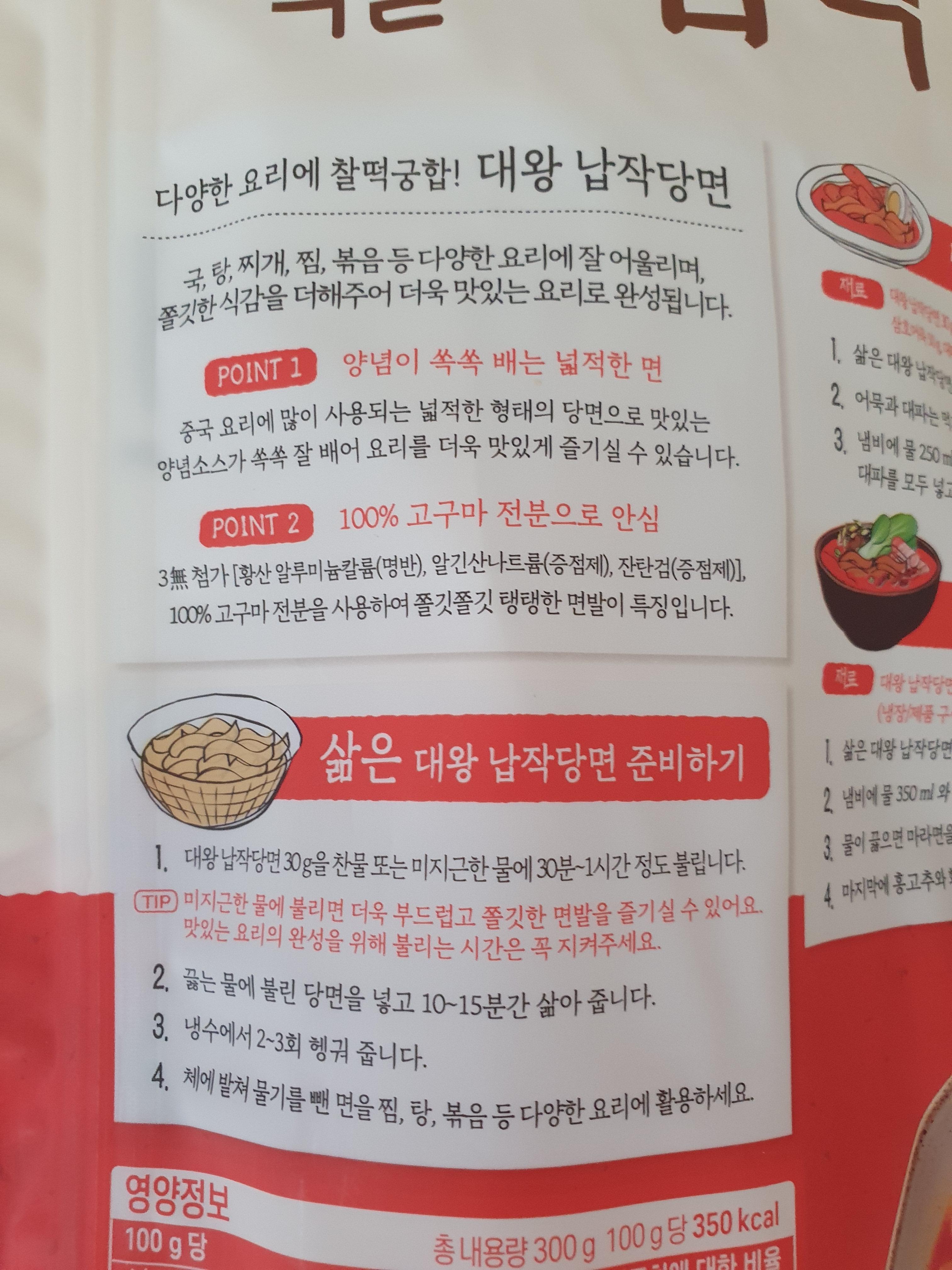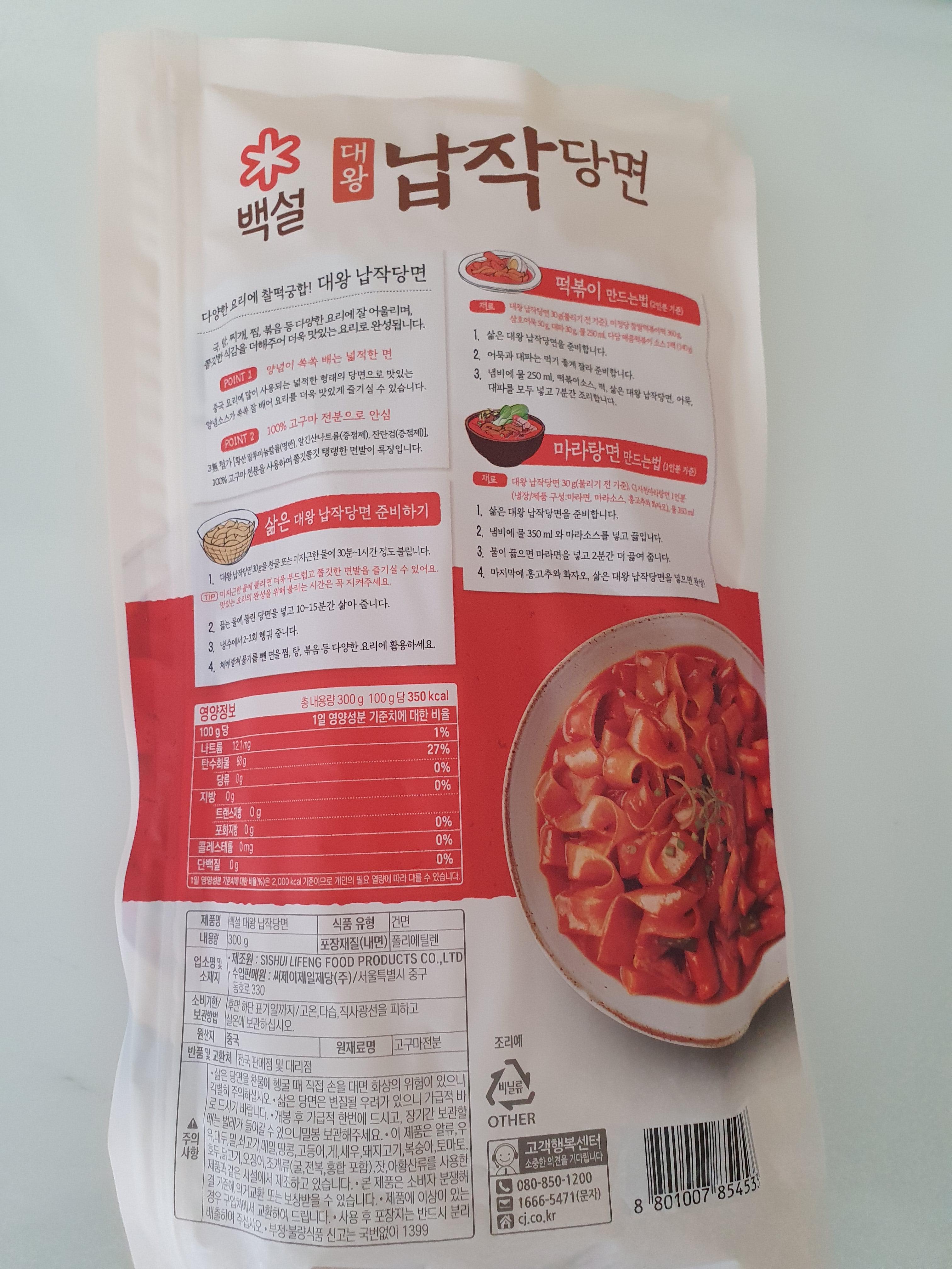 이것보다도 더 큰 당면도 있는데 그게 이름이 뭐였더라... 모르겠고 그냥 중국당면은 그리 선호하진 않지만, 이게또 하필이면 당면 땡겨서 배달 주문하려고 마트앱 들어가보니까 하필 다 품절이어서 백설 대왕 납작당면 300g을 구입하긴 했지만 뭐... 괜찮았다.