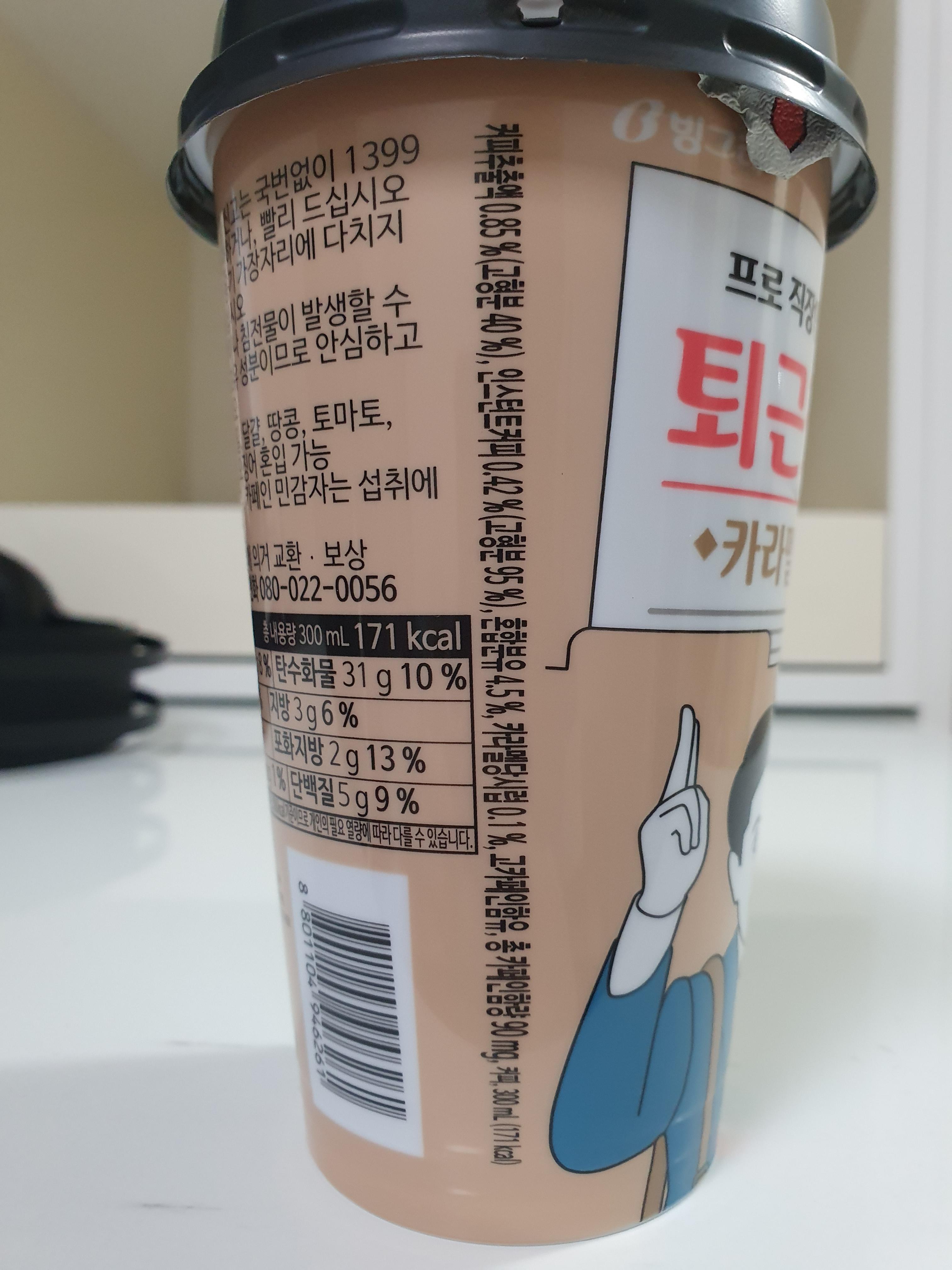 앞서 잠깐 이야기했지만 커피우유에 조금더 가깝지만 그렇다고 커피우유맛은 아니고 쉽게 예를 들면 커피우유의 느낌이 커피음료30%, 우유 70%의 느낌이라면 출퇴근 커피는 커피음료70%, 우유30%의 느낌이라는 것이다.