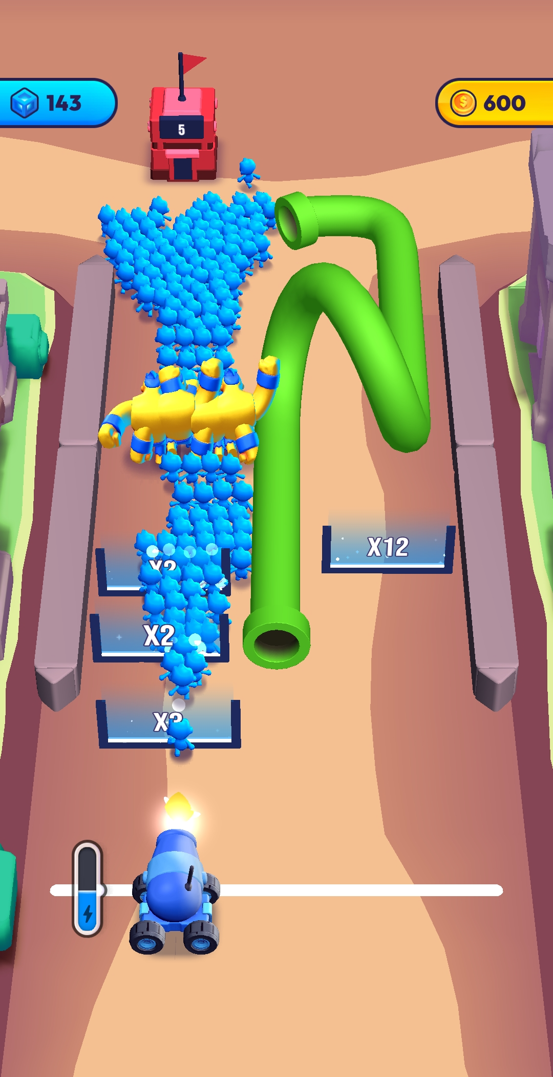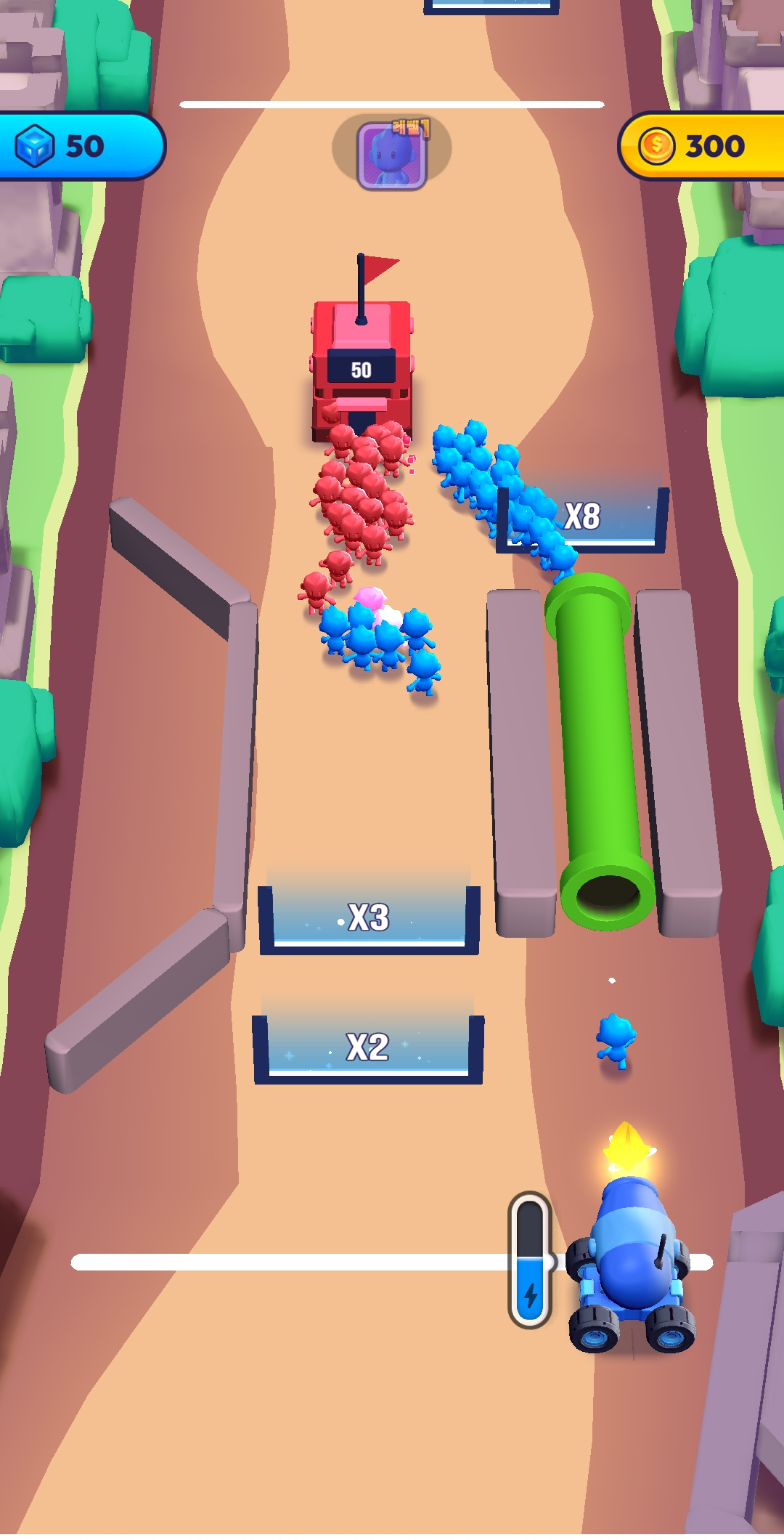 대포는 그냥 터치 앤 드래그로 생산 및 이동을 하는데 터치하고 있다보면 게이지가 풀충전되고 이 때 터치를 떼면 강력한 유닛이 생산된다. '네임드 유닛'이라고 보면 될 것 같고 이 네임드 유닛도 마찬가지로 사칙연산의 영향을 받는다.