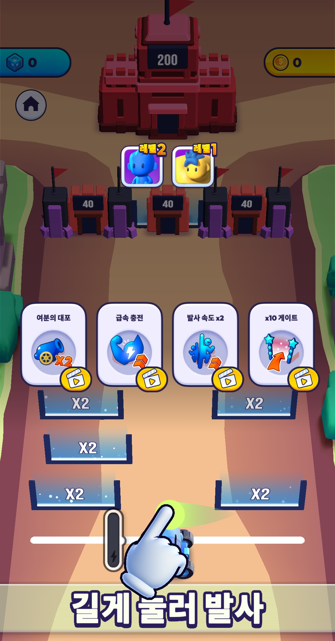 게임 방식은 모바일게임 많이 해봤으면 참 광고로 많이 봤던 그거다. 뭐 지금은 RPG장르에서도 이걸 차용하기도 하고 많아서 꼭 광고겜이 아니더라도 접할 수 있는 방식인데 '대포'가 있고 대포를 좌우로 움직여서 적들이 다가오는 것을 방어하거나 적의 본진까지 유닛을 보내서 파괴하면 된다.